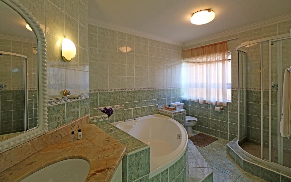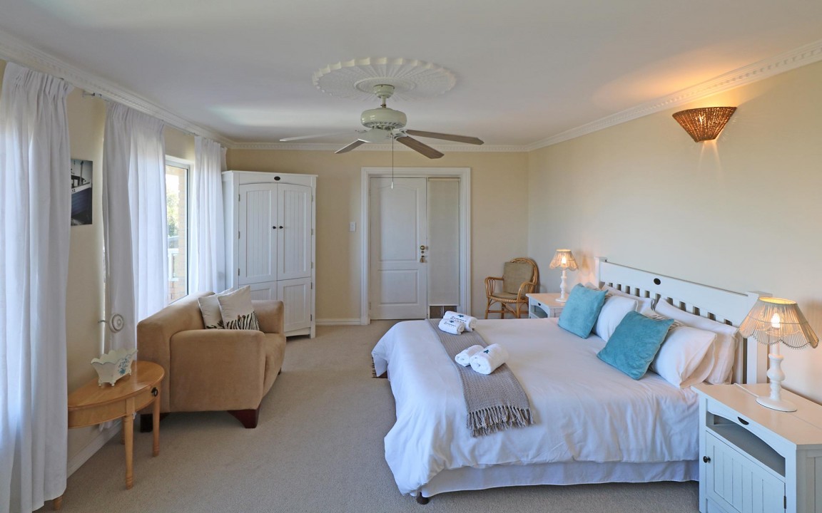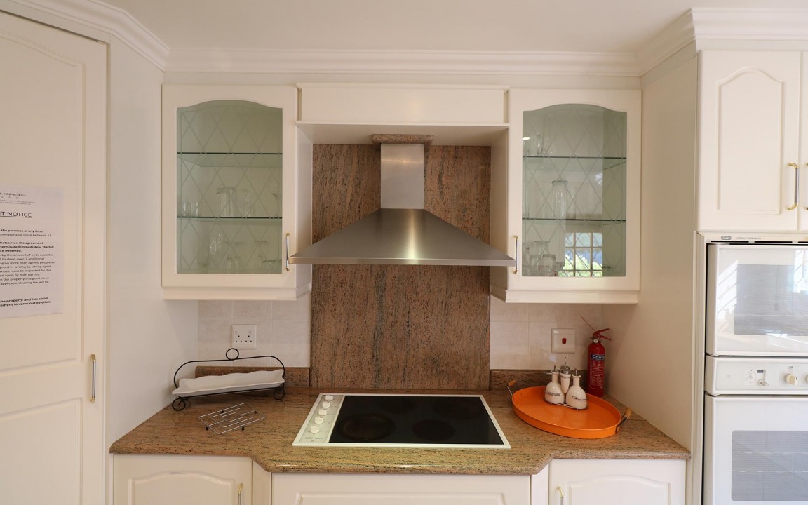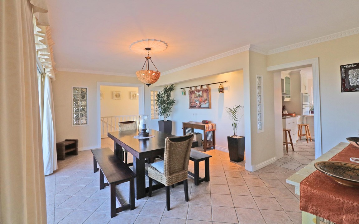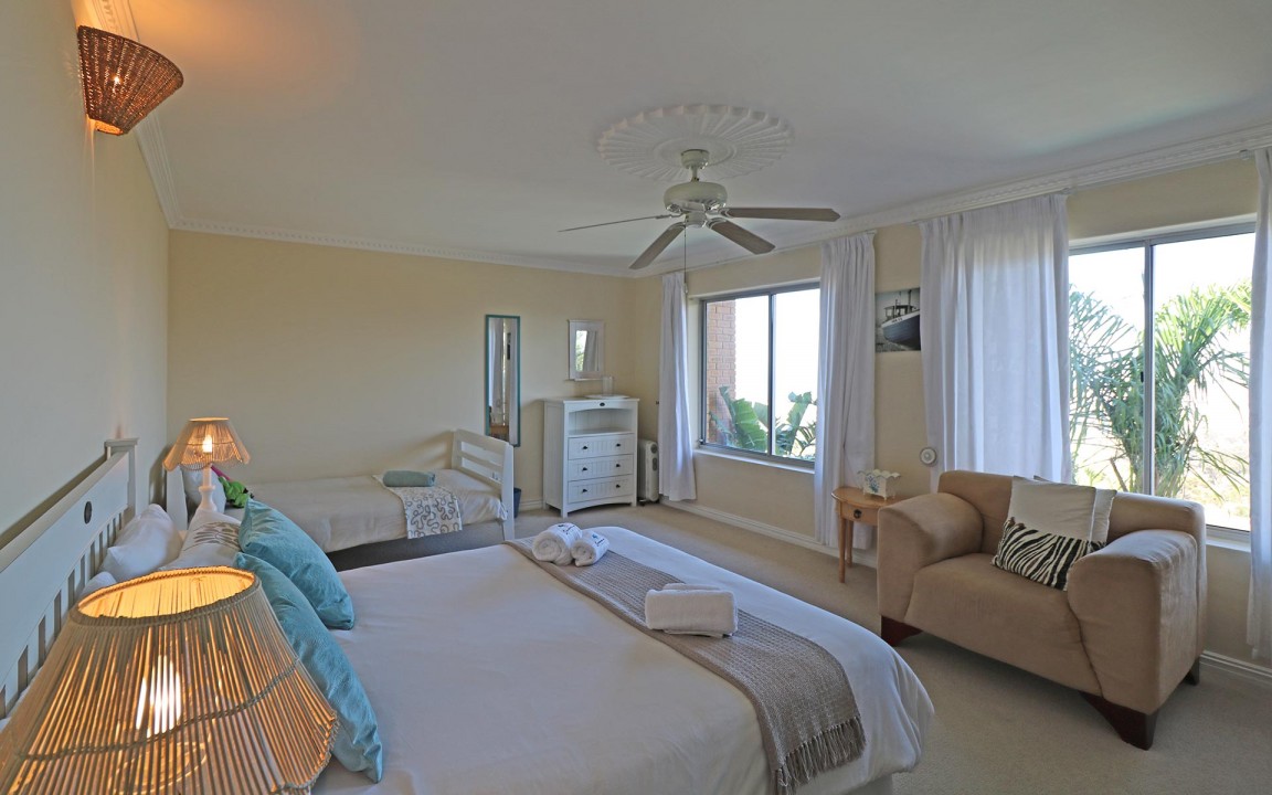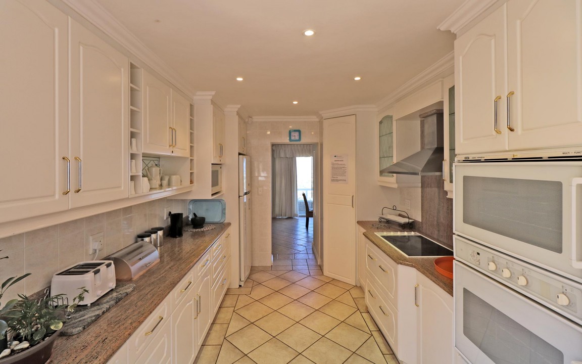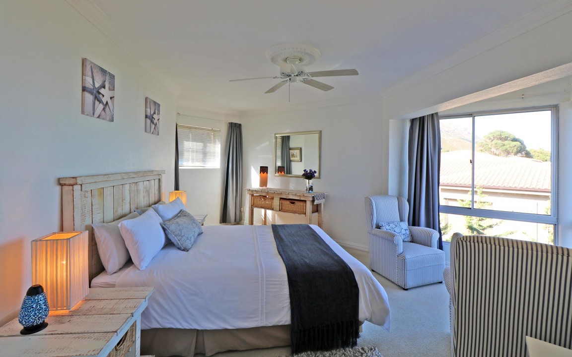The master bedroom is simply wonderful; it has a large full en- suite with oval bath tub, shower and a walk in wardrobe. This room is fitted with big corner windows overlooking the whole of False Bay.
