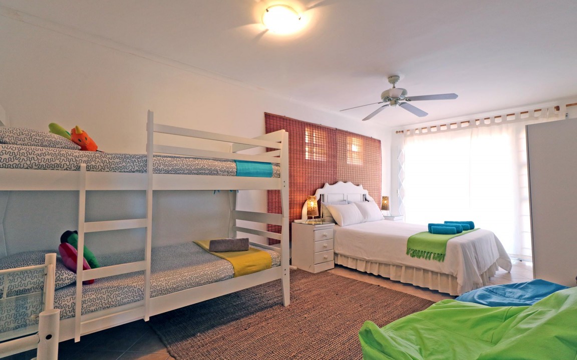 Down stairs you will find 2 well-furnished bedrooms each with their own bathroom. A private access door can be found in the fourth bedroom leading out to the garden and pool.