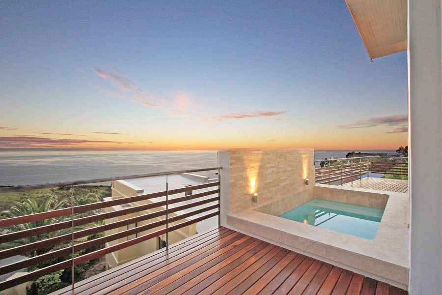 Sundowner Villa also has a separate heated plunge pool on the spacious upper balconies with direct entrance from the stylishly furnished living and dining areas and panoramic views.