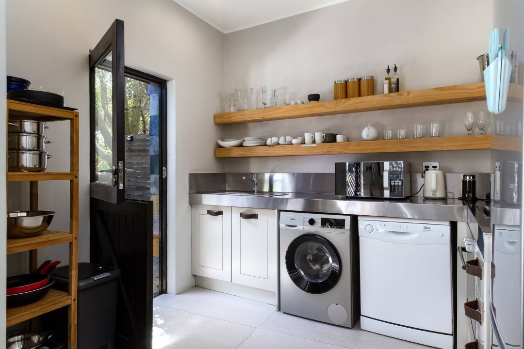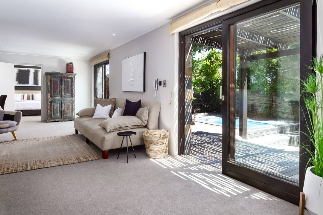 Brimming with eclectic charm, yet beautifully appointed and with lovely indoor and outdoor space, this one-bed apartment in central Camps Bay is a stone’s throw from the iconic beach and a plethora of restaurants, bars and cafes. It has an open-plan living room, which comprises a cosy living room with 2-seater dining table, and a fitted kitchen. From here, large wooden sliding doors open onto a private garden with splash pool and sun deck.