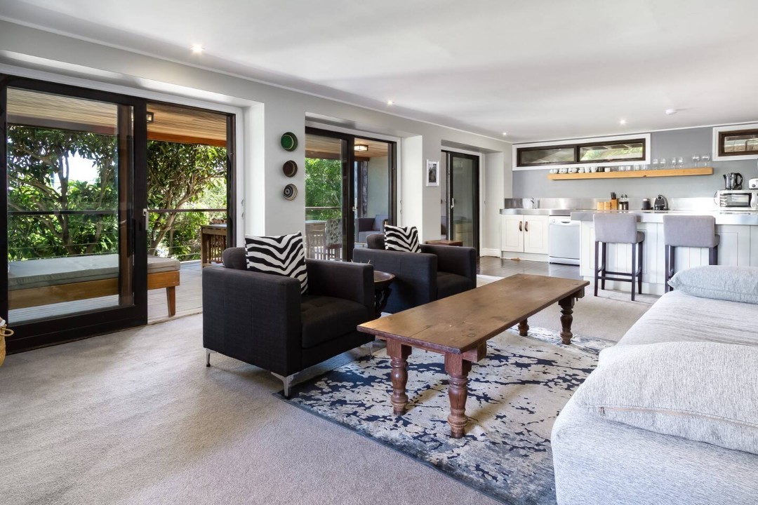From here, doors open onto a covered balcony, with a dining table, extra comfy seating and a day bed. Custom-made louvred shutters can be fully or partially opened, creating the ideal wind-free environment for lunches and dinners, or simply relaxing and admiring the view. The bedroom and bathroom are beautifully appointed and include a Juliet balcony, overlooking greenery. The apartment also has solar power. This lovely apartment can be rented independently, but the property as a whole is ideal for larger friend or family groups.