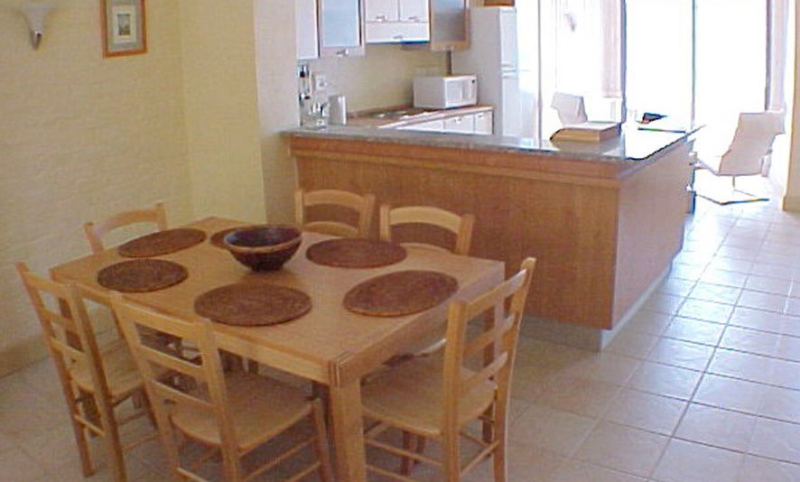 There is a quaint breakfast nook which leads out onto the front patio with spectacular views of the beach and sea.