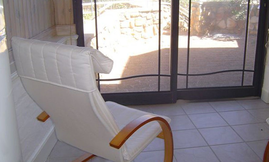 The sliding doors of the lounge open to a protected private back patio with barbeque and garden furniture.