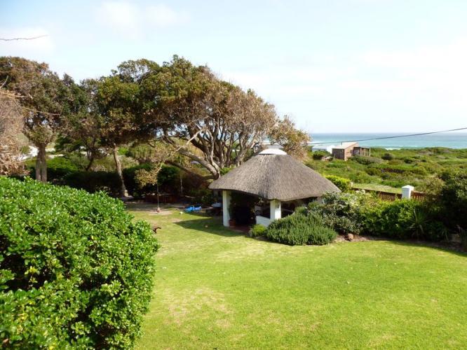 And then you see the tasteful interior. I can see you just dropping down and relax in the lounge or on the stoep. And you can watch over the Milkwood trees towards the sea. If you want to play then use this large garden and braai area where the Egyptian Gees come to visit.