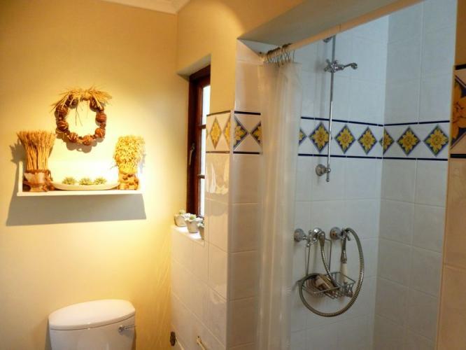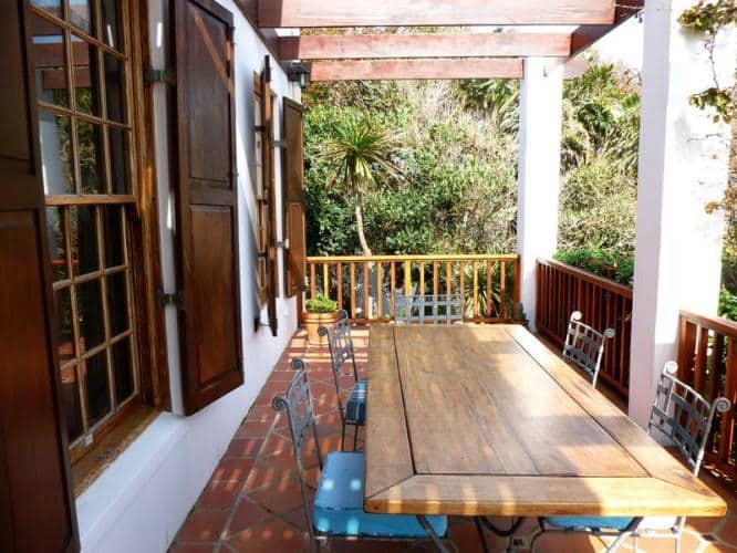 As I mentioned earlier there is a braai area outside with pond. Slightly away and to the side of the home is a pool that’s shared with the cottage next door and in between the pool and house is a private Jacuzzi on the deck with shower. This is the ideal place where you will spend most of your outside time. A few meters away are the back garden with garden table and chairs for morning tea.
