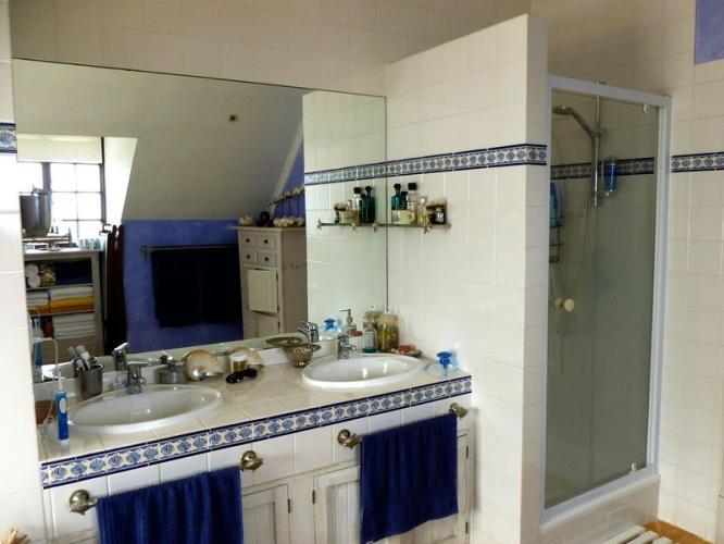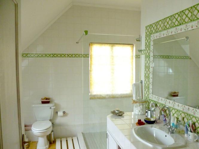 At this level you’ll find three bathrooms, three bedrooms and a TV room with another kids room behind it. Therefore four bedrooms; two with double beds and two with single beds sleeping six. The room behind the TV room is ideal for kid. By the way: As you walk up with the stairs there’s a guest toilet with shower.
