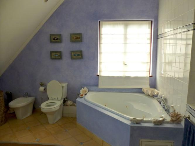 The lounge is rich and spacious with ample room for many people. Next to it is the designer dining table with an open arch to the large French styled kitchen; colourful and warm. If you don’t cook then this place will change your mind. Everything you need is there and only the best. From the stove to the smallest utensil.
