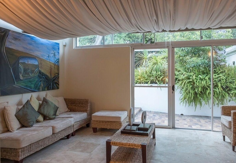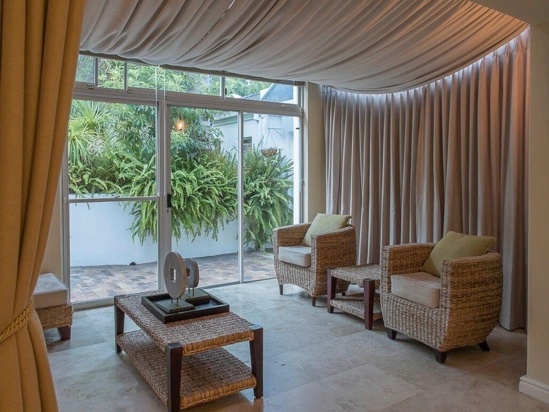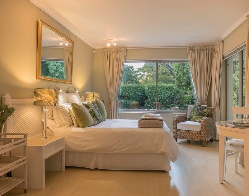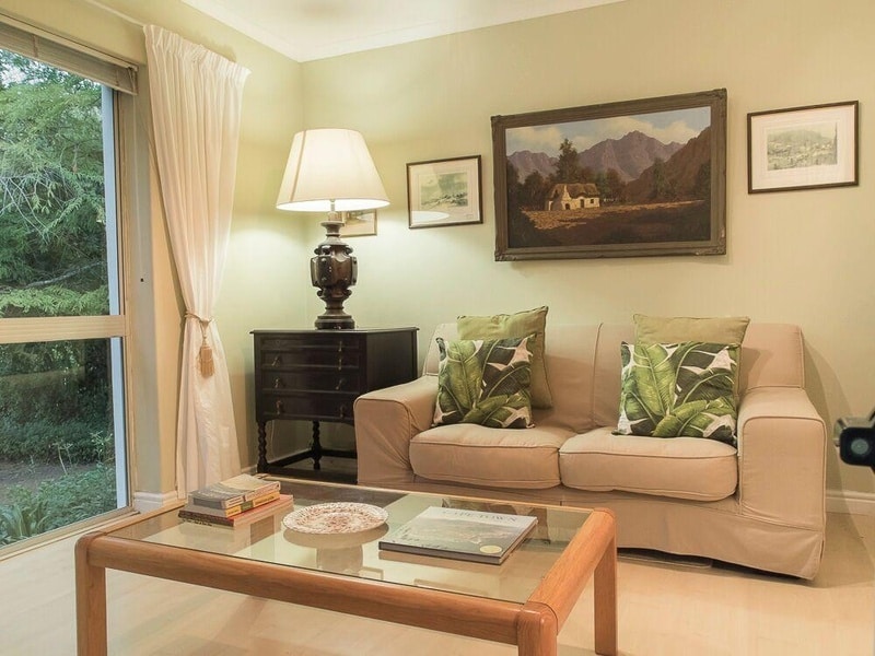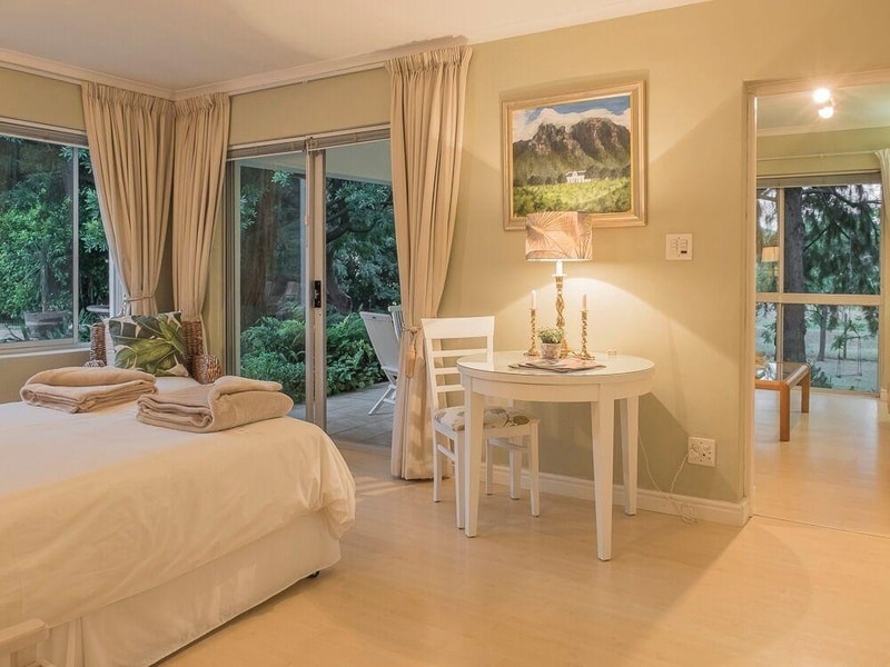 Taronga Cottage comprises 2 bedrooms which flow off the open-plan living area and have sliding doors that open onto patios offering views of the lush garden. The open plan dining room and lounge leads onto a spacious patio, perfect for entertaining and dining outside under candlelight..This brand new cottage offers a comfortable environment where guests can rest and unwind;, take a walk in through the vineyards, or enjoy a glass of Constantia Valley wine.