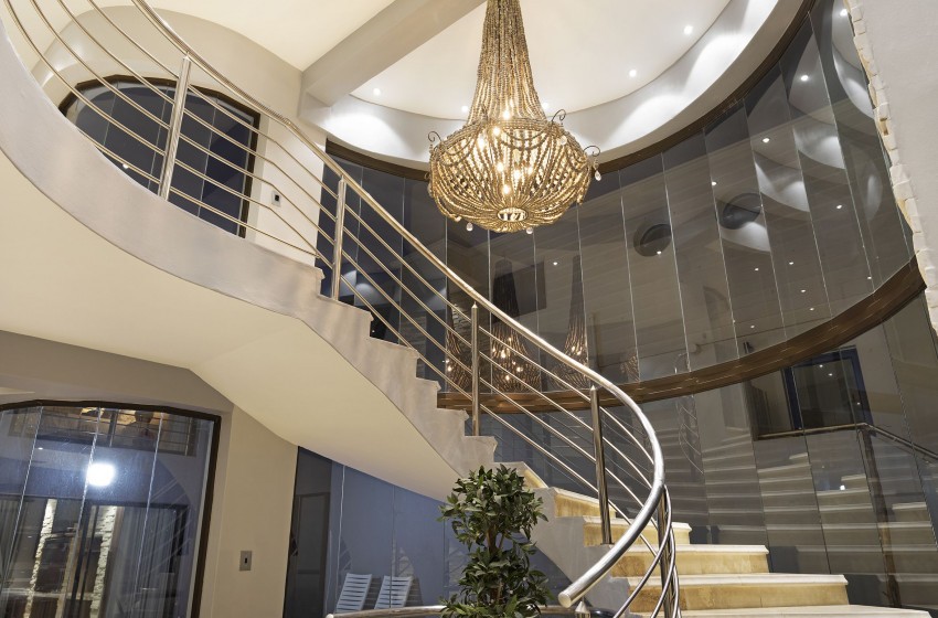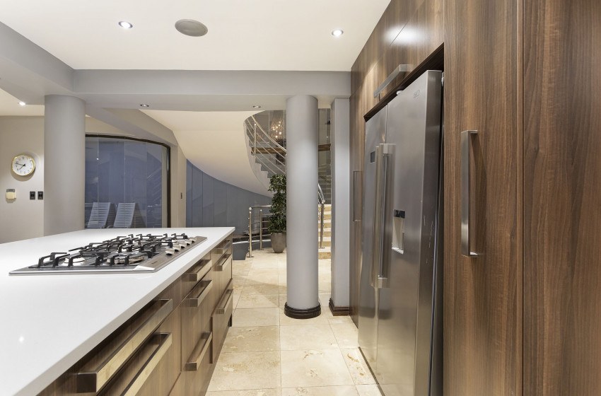 There are 5 air-conditioned bedrooms – each with an en-suite bathroom. (2 king beds, 2 queen beds and 1 double bed) The main bedroom suite is incredibly spacious, boasting wall-length floor-to-ceiling windows, a luxury en-suite bathroom with a shower, bathtub and his&her sinks, a walk-in closet, and direct access to the beachfront.