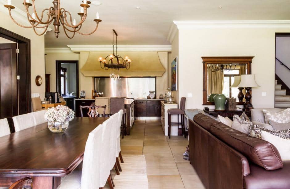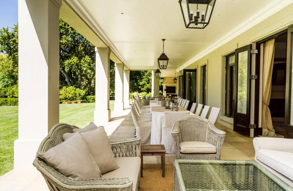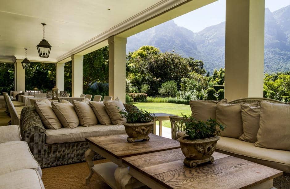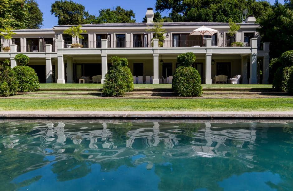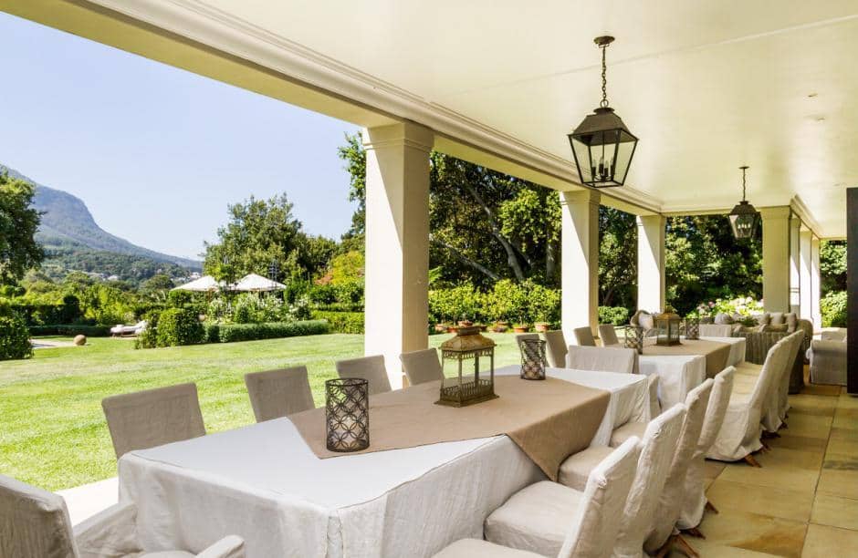 The beautiful, French –style, classic villa in Bishops Court has views of the mountain and botanical gardens and a gorgeous flat manicured garden and pool. Generally massive proportions, high ceilings, a long sweeping driveway and an opulent front entrance make this location an ideal shoot option. Big beautiful bedrooms and bathrooms can accommodate up to 10 people, enveloping guests with a warm and homey feel.