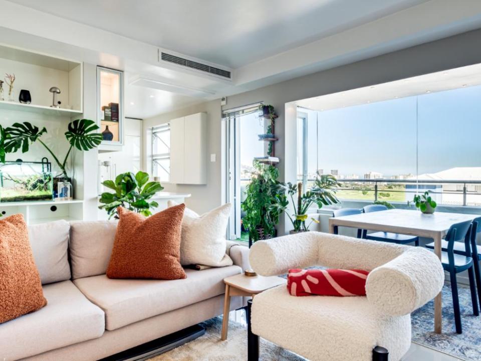 Welcome to our modern luxury apartment in Cape Town, offering an unforgettable holiday experience. This stylish retreat showcases South African furnishings and stunning views. With 24-hour security, designated parking, and backup power, your comfort and convenience are guaranteed. The living room seamlessly flows onto the balcony, providing an enchanting panorama of the ocean and Table Mountain. Inside, enjoy the artistic fusion of modern styles, featuring solid oak furnishings and a state-of-the-art 8K TV. The fully equipped kitchen overlooks the famous Cape Town Golf course and stadium. The master bedroom boasts a luxurious Queen-size bed, breathtaking views, and a pampering bathroom. Air conditioning and delightful plants create a serene atmosphere throughout. The owners, passionate insiders to Cape Town’s restaurant and wine scene, offer personalized recommendations for remarkable experiences. Experience luxury, convenience, and South African hospitality in our apartment. Book your extraordinary journey today.