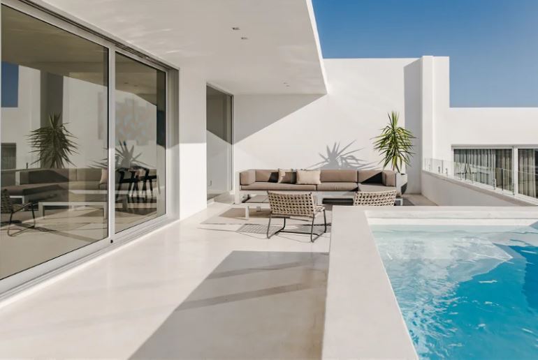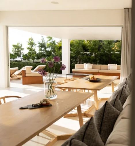 The Avenues offers a decadence of space for a villa, with 2 pools serving the eight large en-suite rooms located in a three-story wing that juts perpendicularly from the living block in layers that suggest you are cantilevered off the plot.