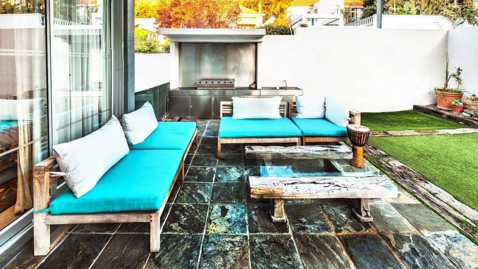 There is a Solar heated pool, small garden with outside seating and outdoor gas cooker (braai).