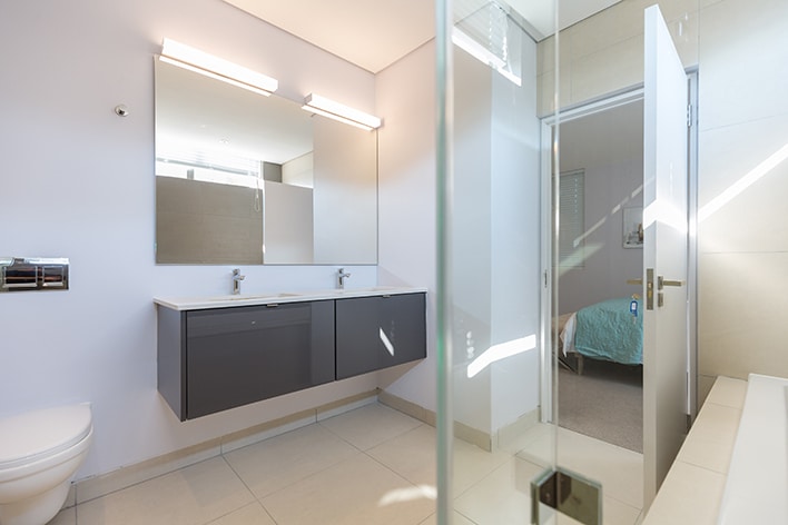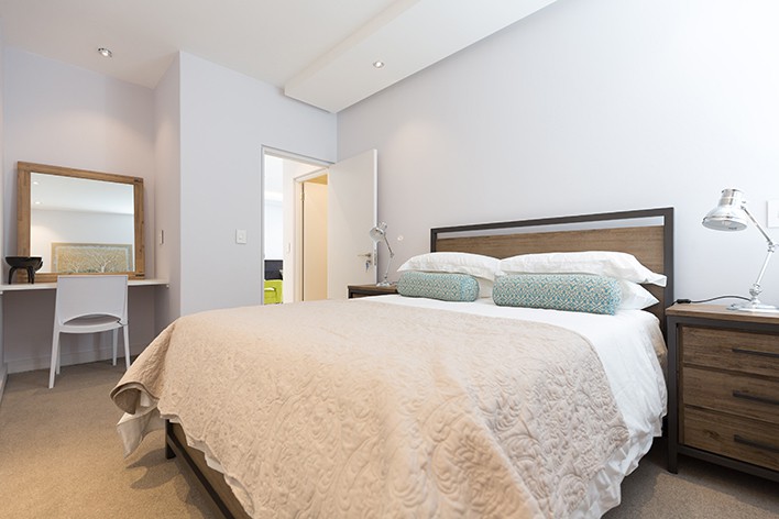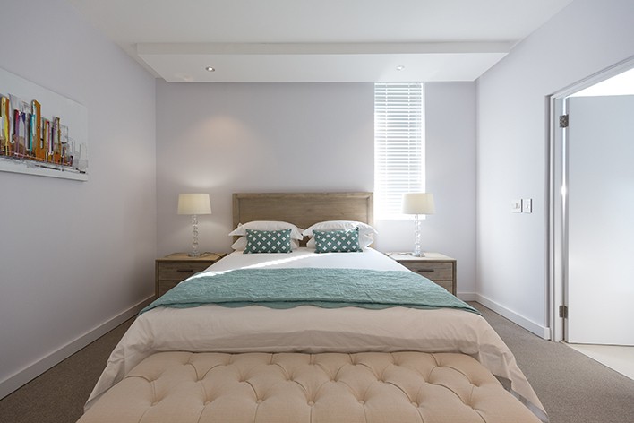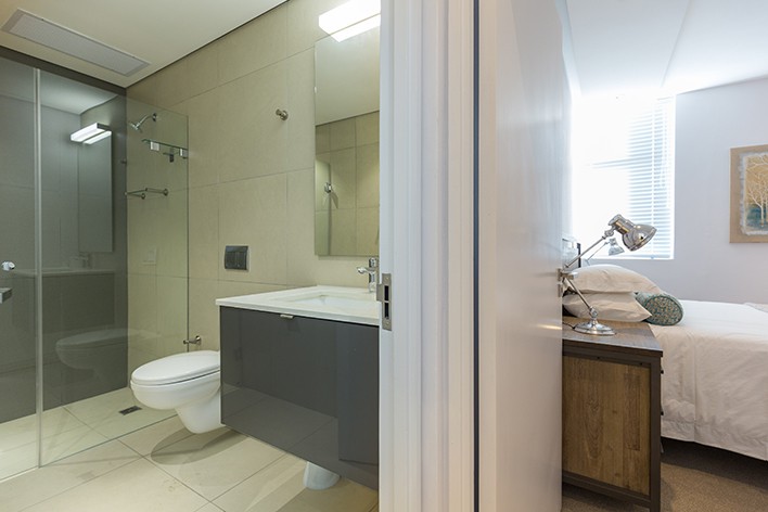 The bedrooms are off the main living space. Both bedrooms which are spacious and beautifully decorated are en-suite and have plenty cupboard space.