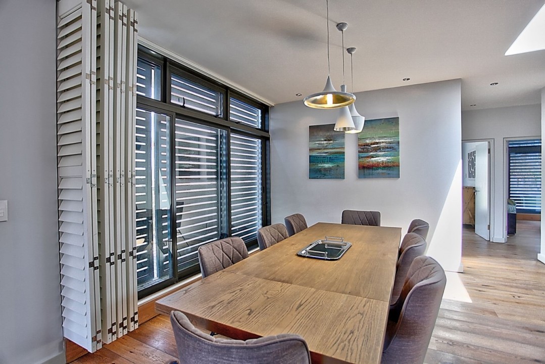 Bright and airy living spaces, which has been stylishly decorated in contemporary-chic tones, greet you on arrival in the apartment with an open-plan lounge and informal sitting area – connecting seamlessly with a dining area. The dining table seats 8 and leads off the kitchen.
