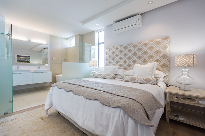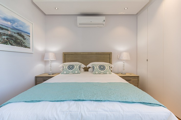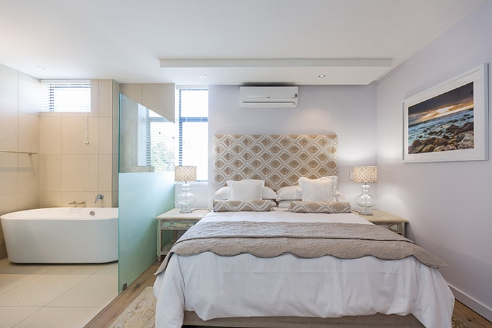 The second and third bedrooms are spacious and light, with a queen-sized beds, ample cupboard space and air-conditioning. These two bedrooms each have lovely en-suite bathrooms.
