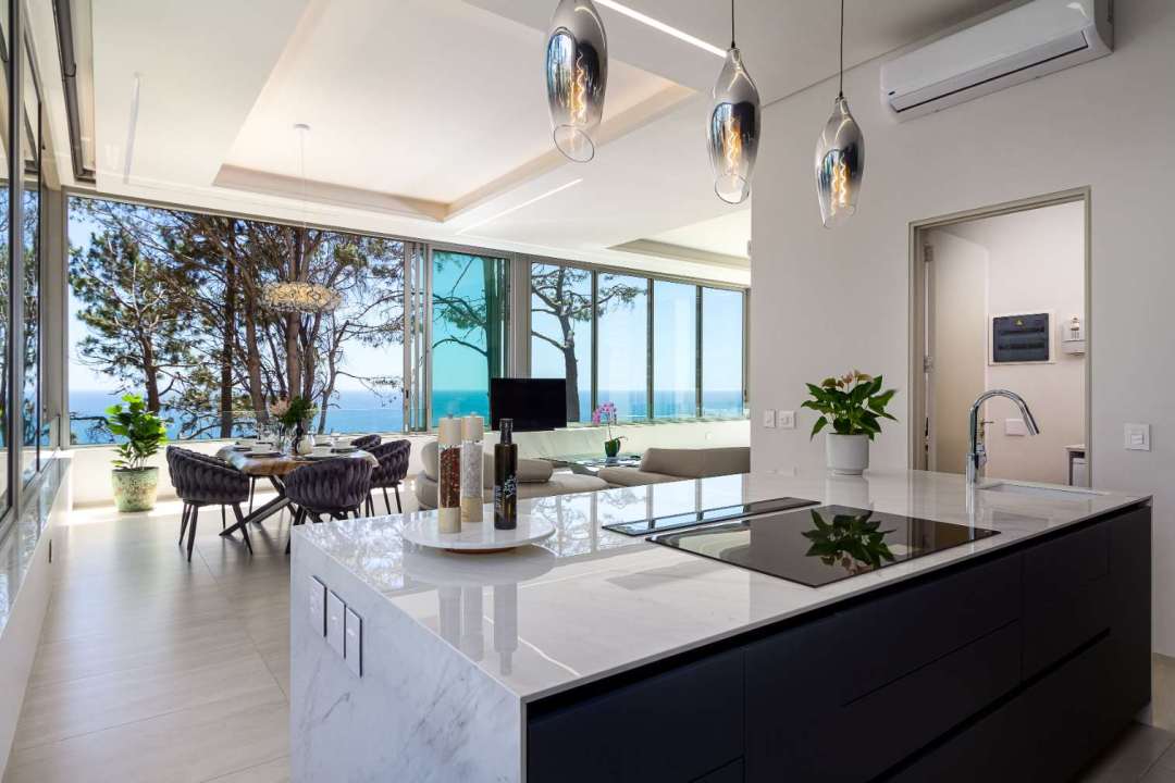 Step inside to discover a light-filled living space where large glass windows blur the line between indoors and out. The stylish lounge, high-end modern kitchen, and elegant dining area flow seamlessly onto a private balcony – perfect for sunset cocktails or al fresco dining. A dedicated bar area and an outdoor seating overlooking the coastline elevate the experience, making this home ideal for both relaxation and entertaining.