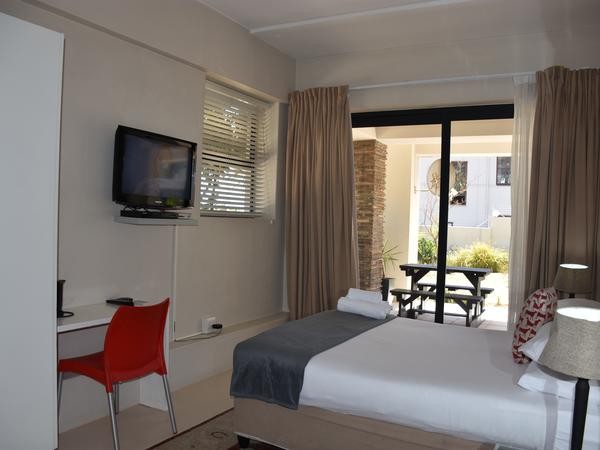 Garden rooms are on the lower level and suit Solo Travelers who enjoy a garden setting (can sleep two adults *queen bed).  These Petite Economy Garden rooms offer easy access to the outdoor pool, jacuzzi, steam room & sauna area and are great value for money in an upmarket holiday area.  100% open plan bedroom to bathroom concept * here bedroom space is separated from the bathroom area by frosted glass wall panels.