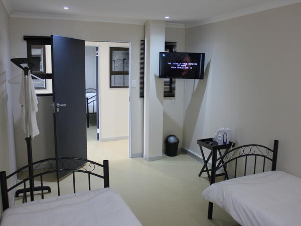 Family Suite – The large family suite consists of two inter-leading areas.  One area holds two queen sized beds – The second area consists of a mini lounge area.  The family Suite contains two shower areas.  It leads out onto the large garden, has easy access to the outdoor pool, and is very conveniently situated next to the jacuzzi area. Room 105
