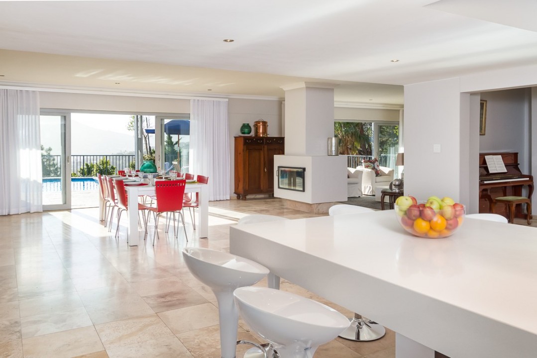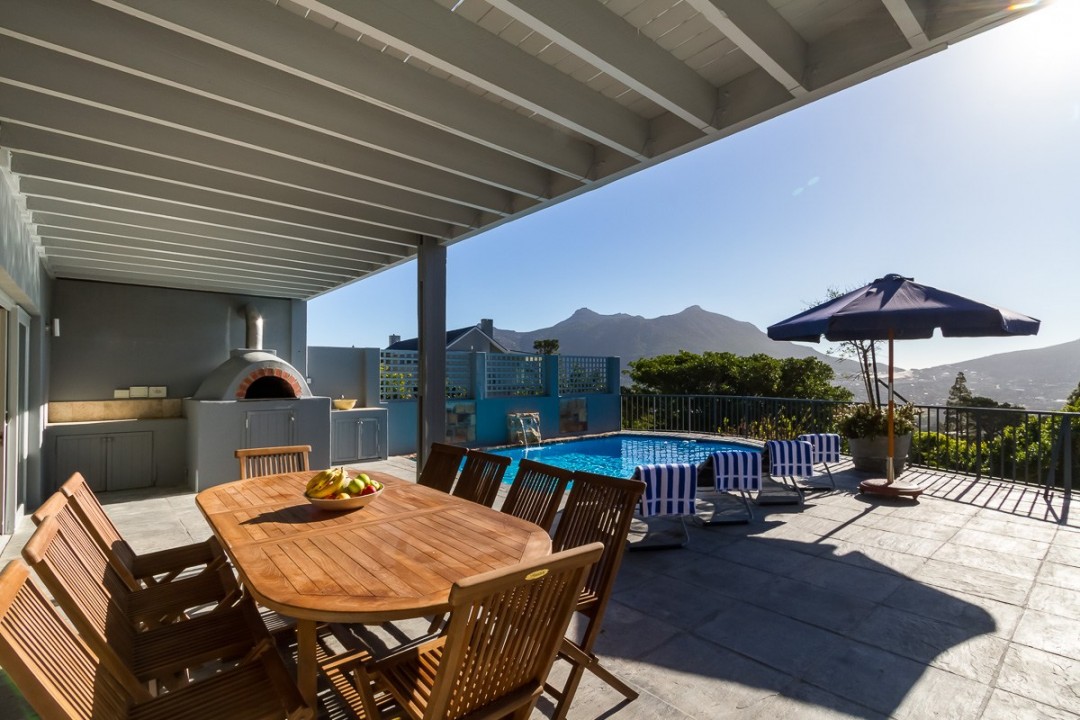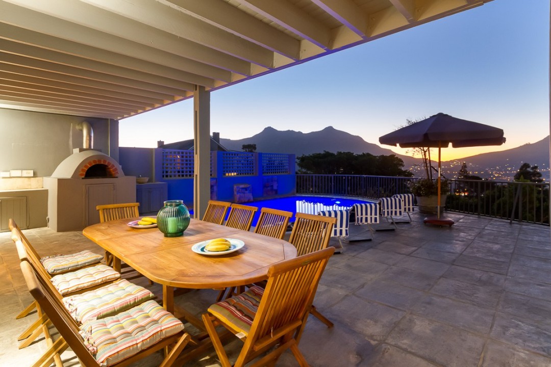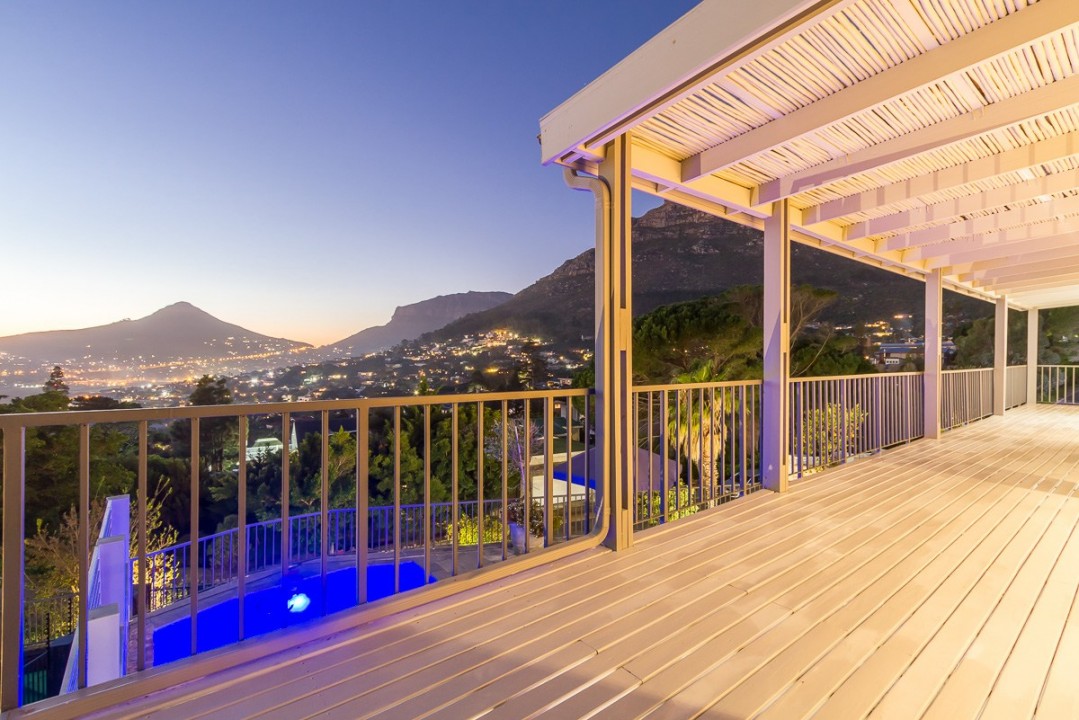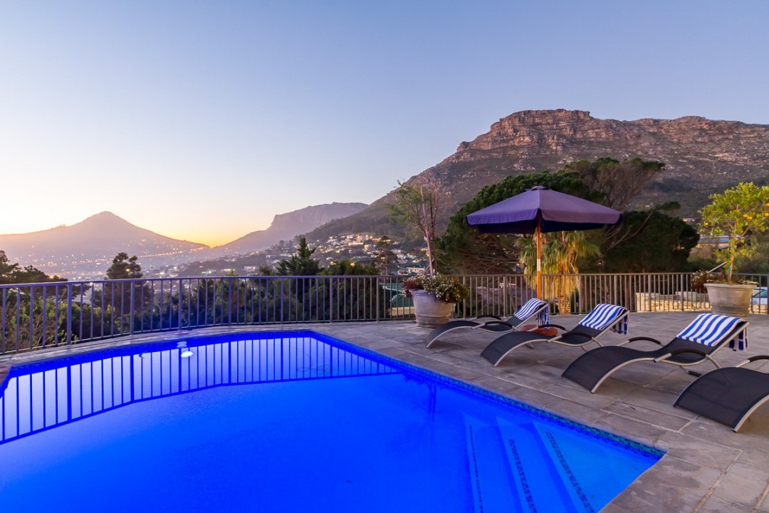 Hillcrest Villa is secluded in Hout Bay with its dazzling 6 bedrooms, easy access to Cape Town. This property’s large windows and doors provide spectacular views of the rugged Cape Peninsula Mountain Ranges. With manicured back and front gardens, large pool and deck surrounding the sun-kissed façade this is a haven of light, leisure and luxury. Enjoy the best of South African vacations in a shimmering, stylish setting.