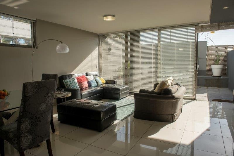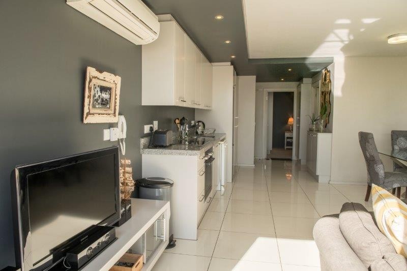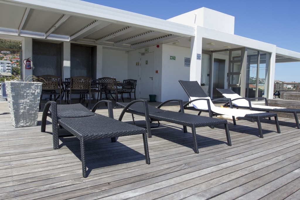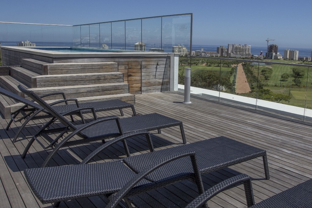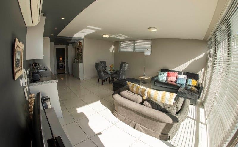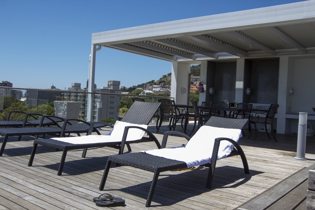 A modern beautifully furnished One Bedroom, Bathroom self catering apartment in central vibrant Greenpoint. The apartment is spacious with a beautiful outside patio with plants, to dine or relax in.Roof top dec-k – spectacular 260 degree view of park, sea, golf course and stadium sparkling pool – covered braai facilities. Outside sun loungers covered area with comfortable sofas.Covered parking – bus stop outside walking distance to beachfront, waterfront-down the road to Long street nightlife. Spa, bottle store about 150 meters from the front of the building. Across the road is an awesome indigenous park with ponds, birdlifewhich you can picnic and relax. The path leads to the waterfront.