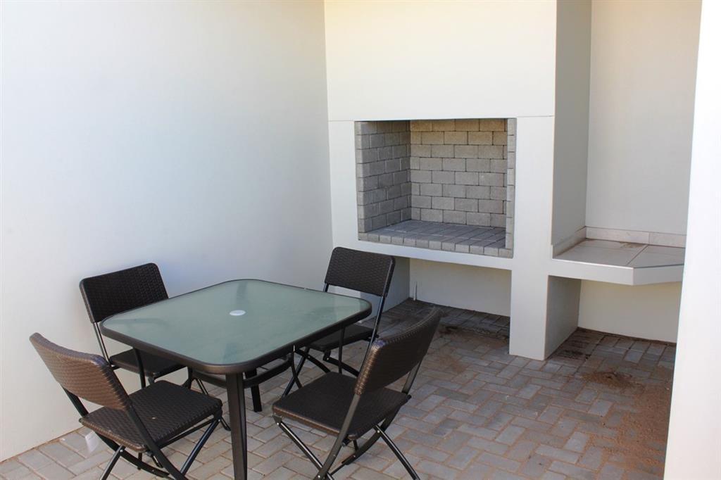 The house has an open plan living area that leads to a braai area on the outside with a sheltered built-in braai.