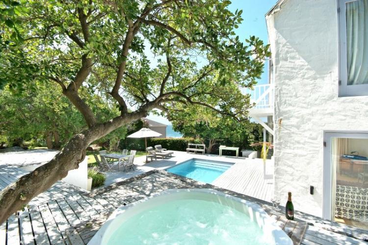 Wandering deeper into the house you’ll find a sunny family room with the requisite over-stuffed day-bed, ideal for lounging with a cold beer and one eye on the Test Match. Alternatively, you can do exactly that from the jacuzzi if you simply roll the telly out of the French doors! Summer scents linger and an inviting turquoise pool glints under a hot sun. The generous bleached deck begs for long family brunches or evening BBQs (there’s even an outdoor pizza oven) and stretches to a rambling Mediterranean garden, nudged by a mountain backdrop.
