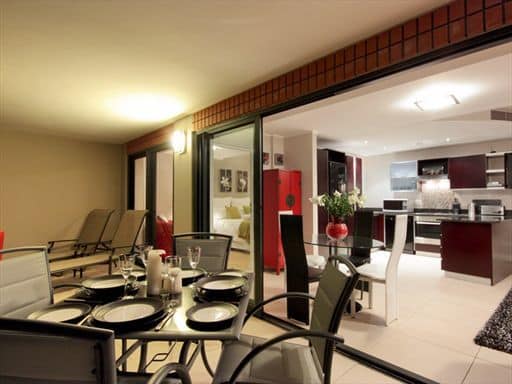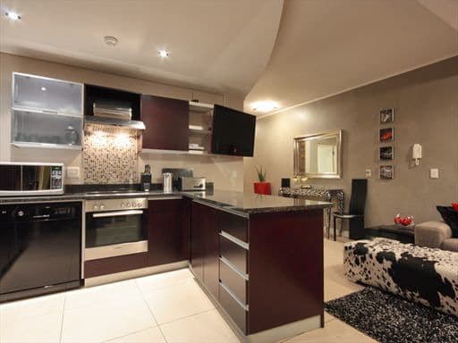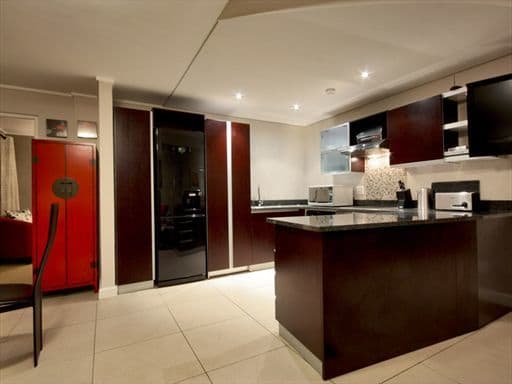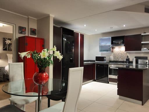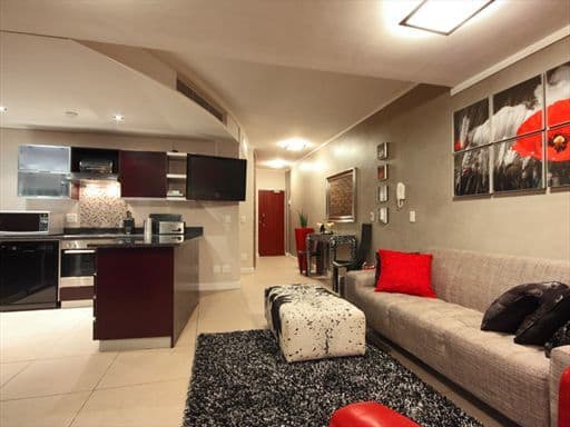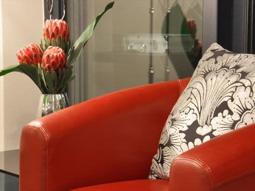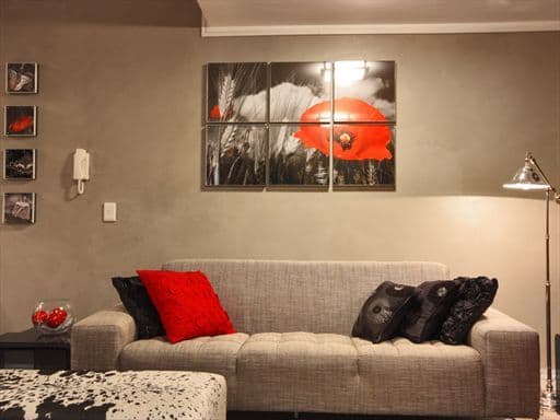 Inside, the apartment is designed in a sophisticated palette of cool greys, cream and reds with a modern African twist, evident in the unique furniture pieces and interesting photography adorning the walls. The apartment boasts high quality finishes throughout with a keen eye for attention to detail.