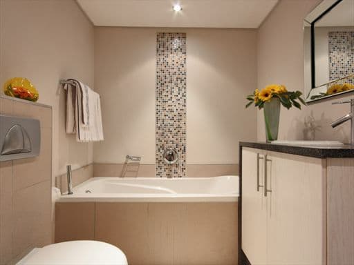 The kitchen is well designed with plenty of cupboard space, state of the art kitchen ware and luxury finishes. Mosaic splash back detail, steel, glass and marble kitchen counter tops compliment the slick and stylish interior of the apartment.
