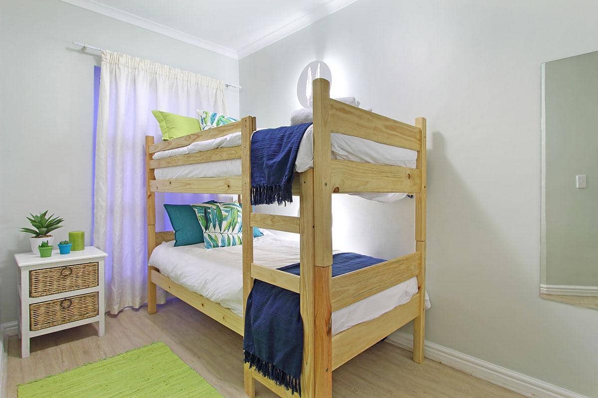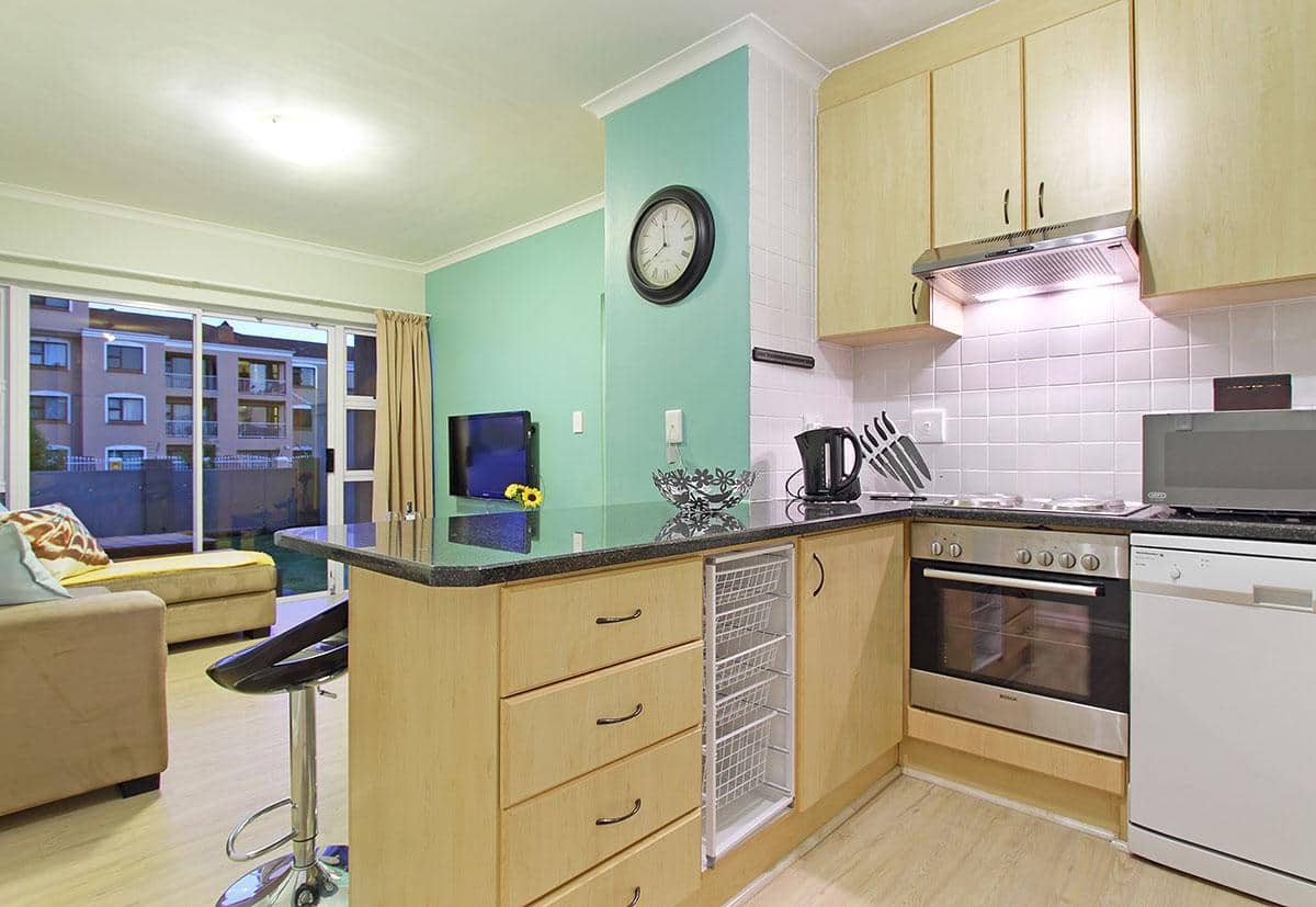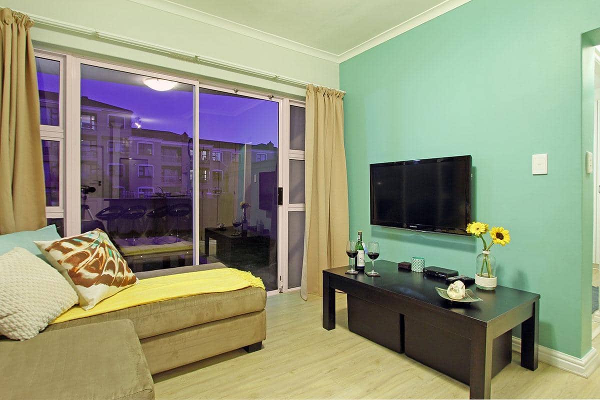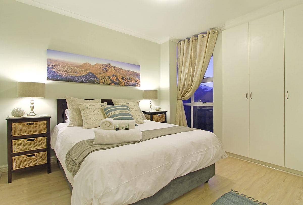 The apartment’s two bedrooms accommodate a family of 4 and there is a full family bathroom. If you would prefer to get out and explore, the beach of Bloubergstrand is nearby, and since the complex is situated on the MyCiTi bus route, you will easily be able to access numerous other Cape attractions, such as the buzzing Cape Town city centre, the gorgeous coastal suburb of Sea Point and the Cape’s number 1 visited destination: the V&A Waterfront.