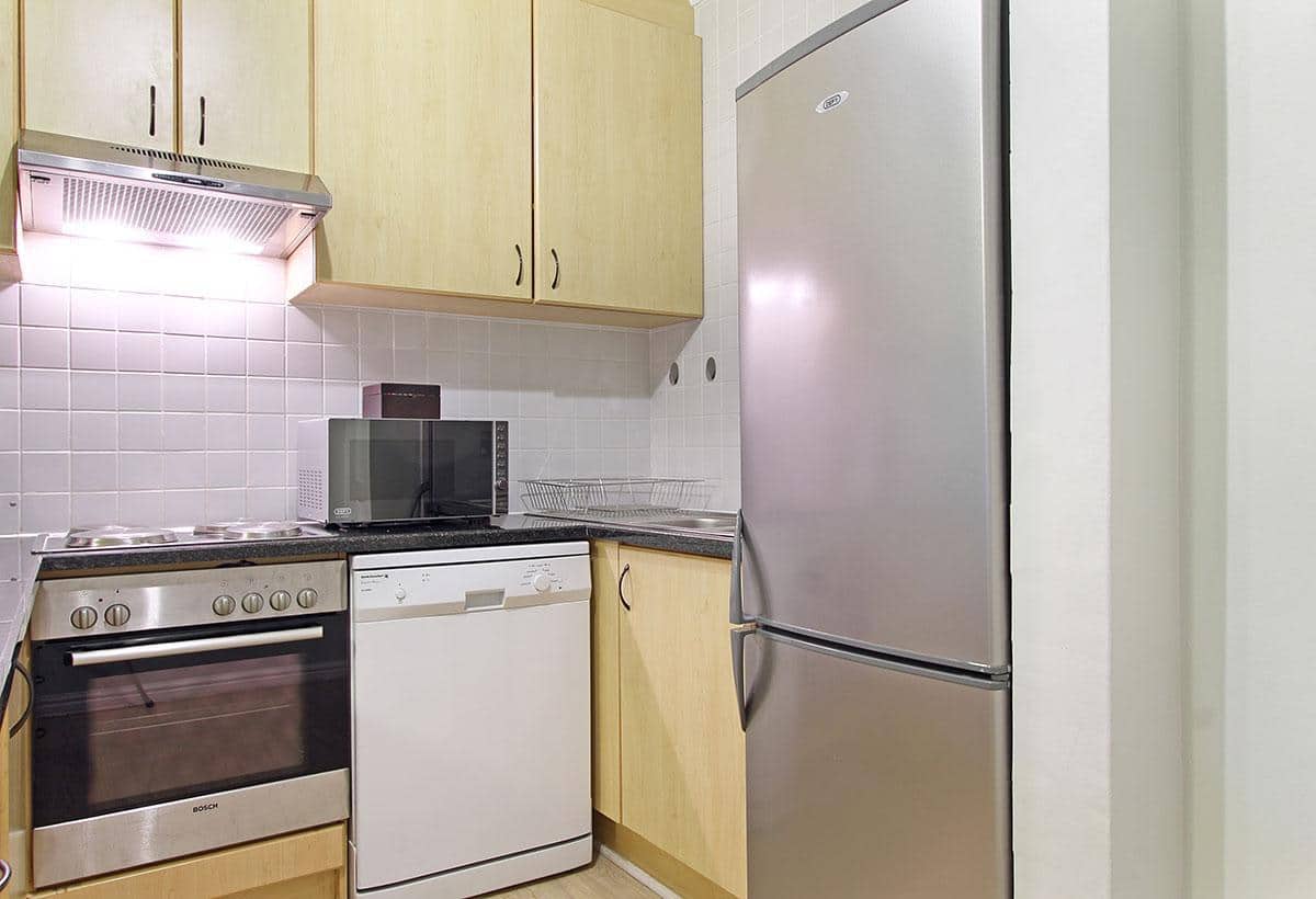Step into an open plan designed interior including a completely supplied kitchen, with a washing machine and dishwasher, as well as 4 bar stools to enjoy a casual breakfast on the counter.
