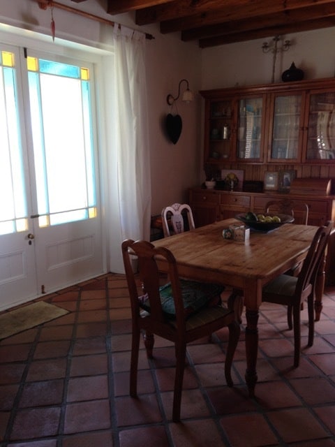 The veggie garden is flourishing, so guaranteed herbs, tomatoes and more. There is an alarm system, with beams and bars on the windows.
