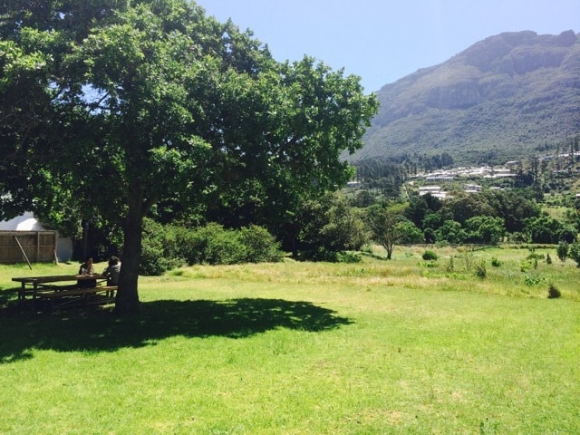 A BIG garden which catches the sun, and is shaded by 2 lovely oak trees which offer hours of napping on the grass. It flows onto a wild area that used to be a vineyard, and is now home to lots of Guinea fowl and herons. Walk down to the bottom of the property and meet the Disa River which flows through Hout Bay.