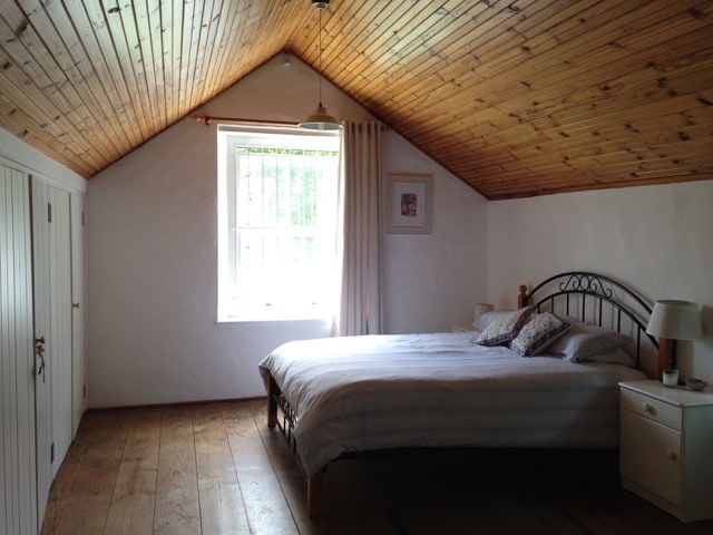 2 bedrooms, with double beds. One on-suite bathroom, plus bathroom downstairs and guest loo. Outdoor hot shower.