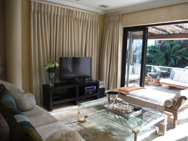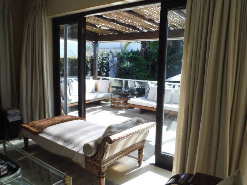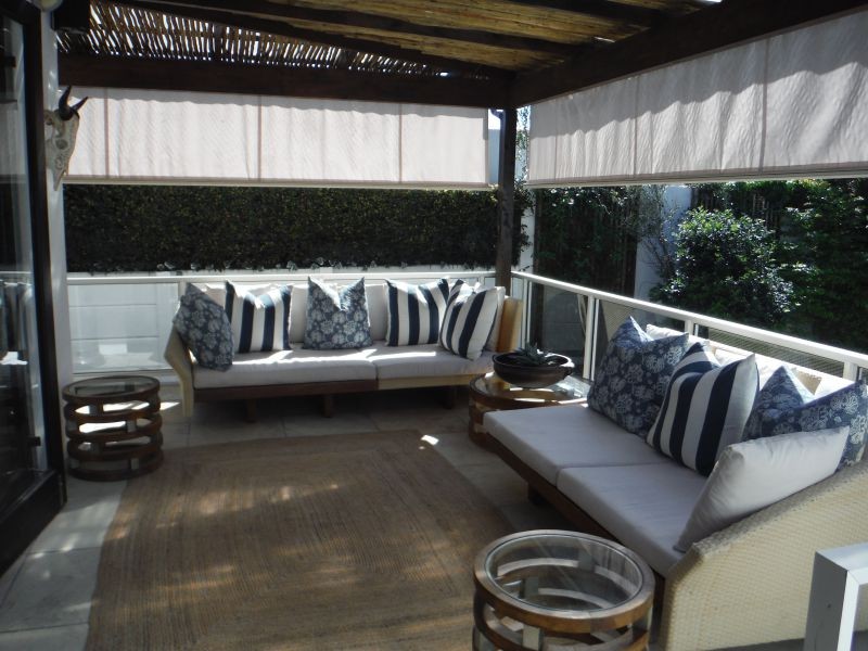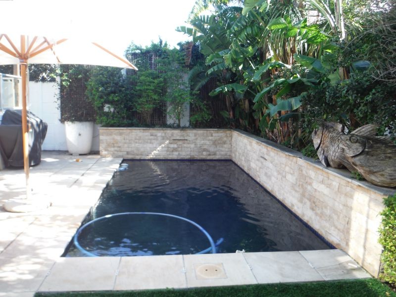 This inside open plan living area leads onto a fantastic outdoor lounge patio which is an upper deck area with an umbrella and deck chairs for sun tanning. A few stairs down from the patio is a little garden with the perfect sized swimming pool which gets plenty of sunlight. There are 3 bedrooms of which 2 are in the main house and the 3rd in a gorgeous cottage in the garden but all in close proximity.