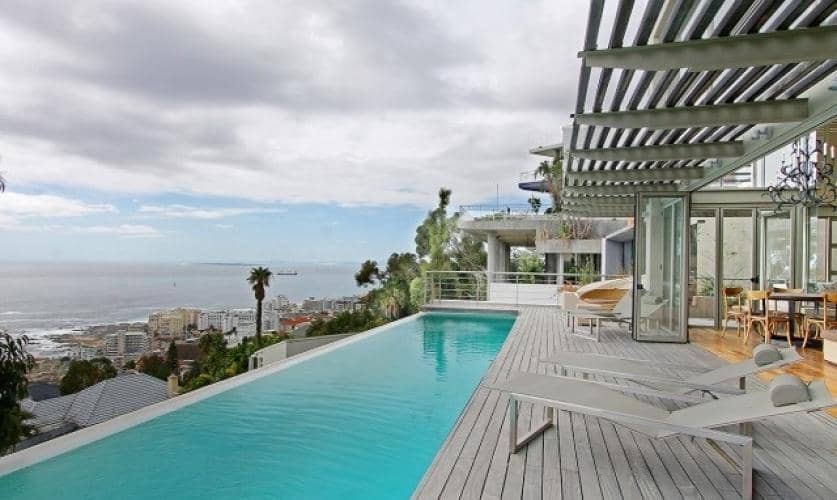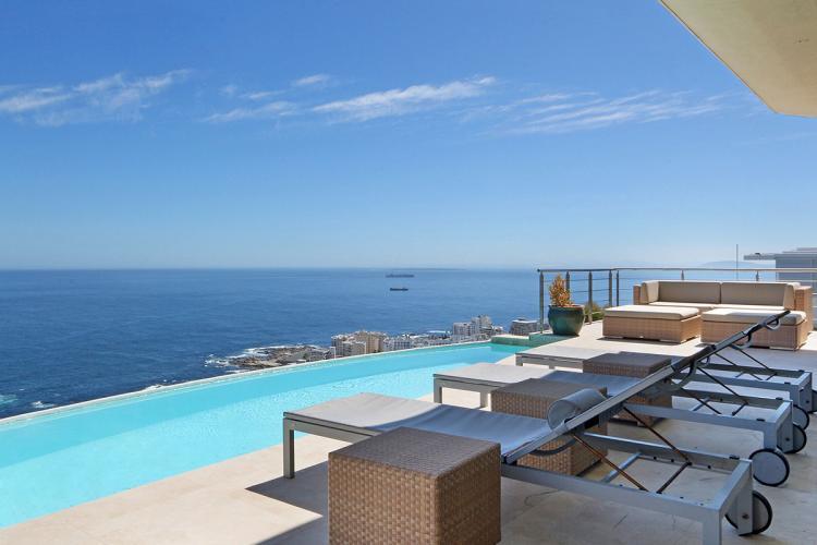 Situated in Bantry Bay, Cape Town, Titan Villa offers a superbly appointed,virtually wind free, central location, encompassing pure luxury. With 6 bedrooms, all en-suite, two infinity pools, two fully equipped kitchens and a Jacuzzi, Titan Villa offers unencumbered 180° ocean views.