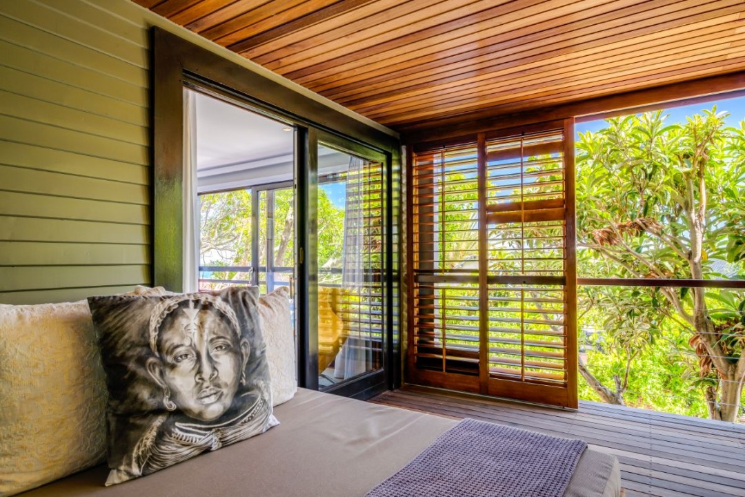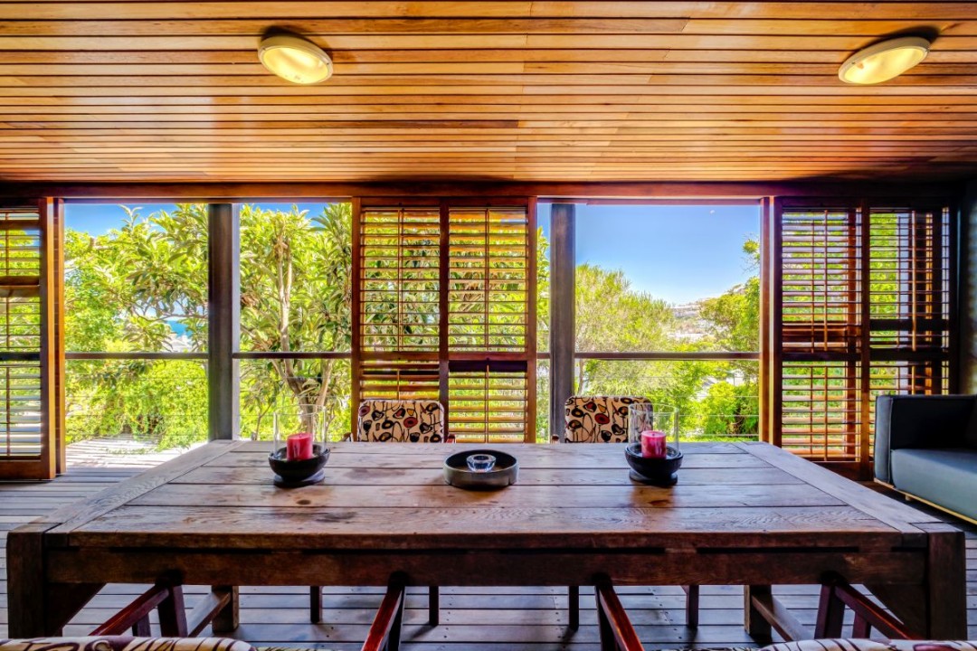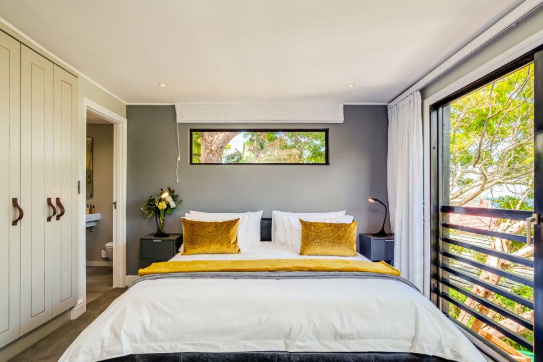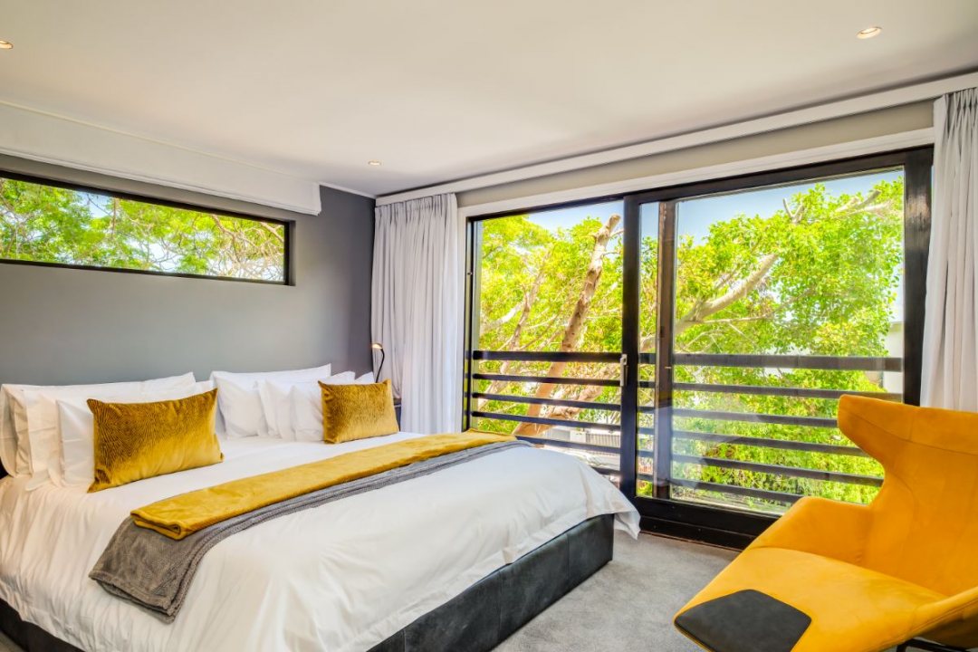 This property is one of three 1-bedroom self-catering apartments, located within walking distance to Camps Bay beach and restaurants. The apartment enters into a spacious lounge. An open-plan kitchen adjoins the living room and is well equipped. This area opens up onto a protected balcony which is shadowed by a huge tree, enhancing the feeling of privacy. The balcony features a long dining table and day bed. The master bedroom is situated off the open plan living room and also accesses the balcony. It has a queen size bed and a separate Bathroom.