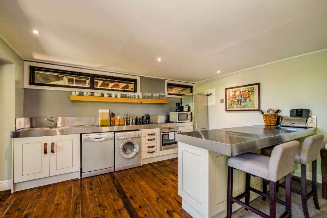 The kitchen and living room are open plan to one another, with a long breakfast bar counter. HOB unit – electric Dishwasher, Washing machine, Microwave, Nespresso