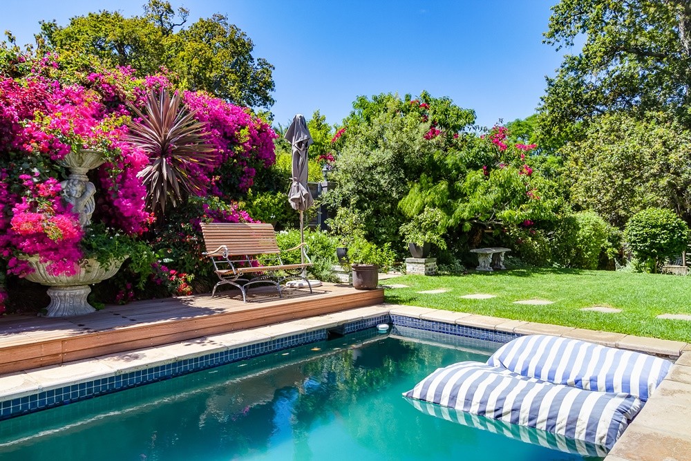 Beautiful private “Garden of Eden”. A fabulous indoor-outdoor bar/entertainment/barbeque area leads to the pool and garden.