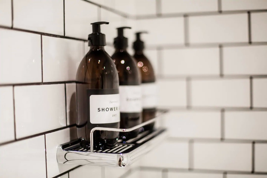 The private bathroom, with large shower, has beautiful scented amenities and a hairdryer.