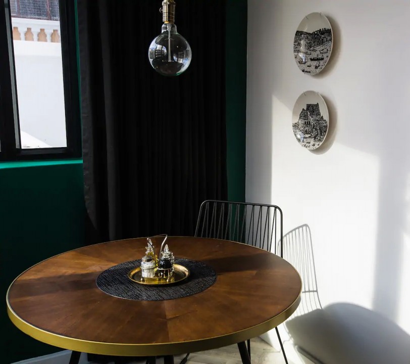 There’s a dining and working area fit for two.