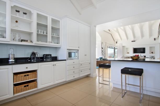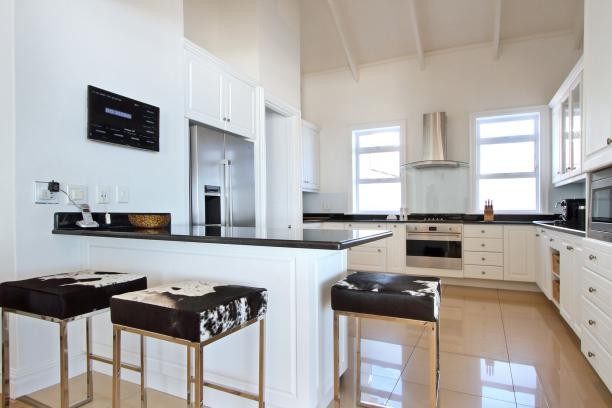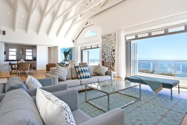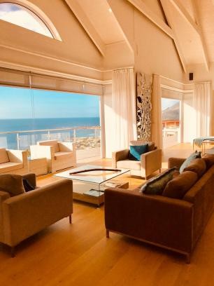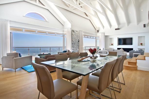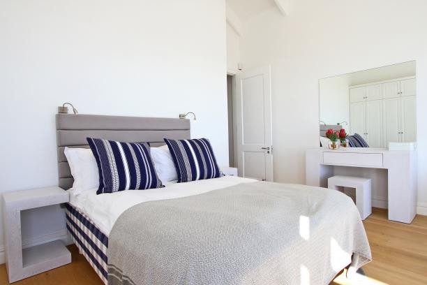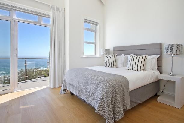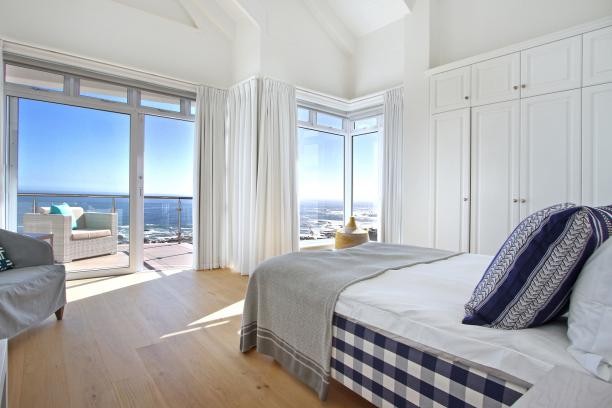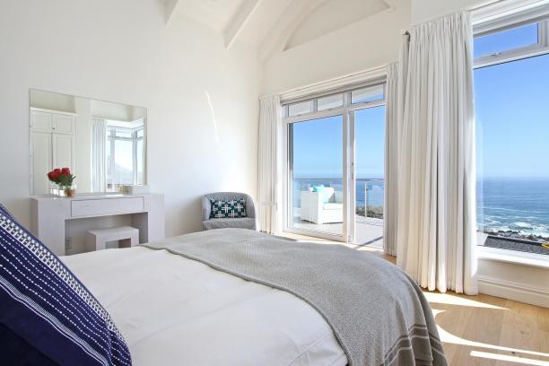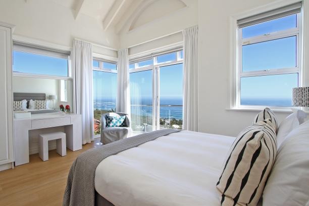 The Upper House 2 consists exclusively of the top level of The Upper House and is located on the hillside in the exclusive suburb of Camps Bay. Upon entering the villa you are greeted with the most impressive and expansive sea views that sweep across the open plan living, kitchen and dining area that all lead onto a large balcony. The Master bedroom and second bedroom are also situated on this level with both rooms leading out onto the balcony.