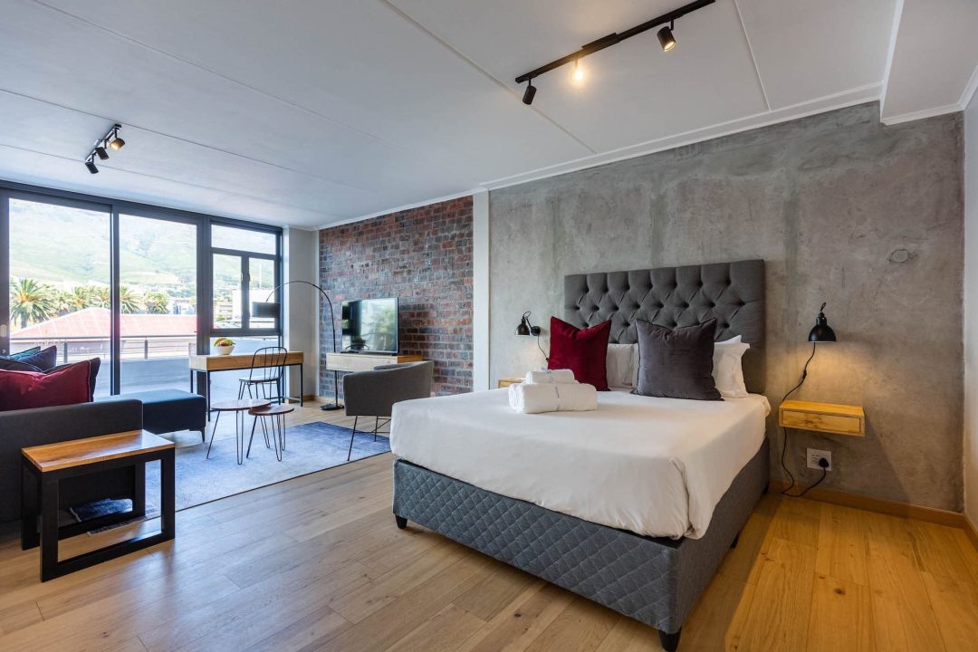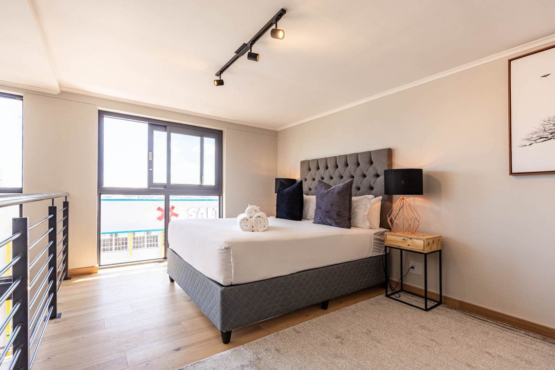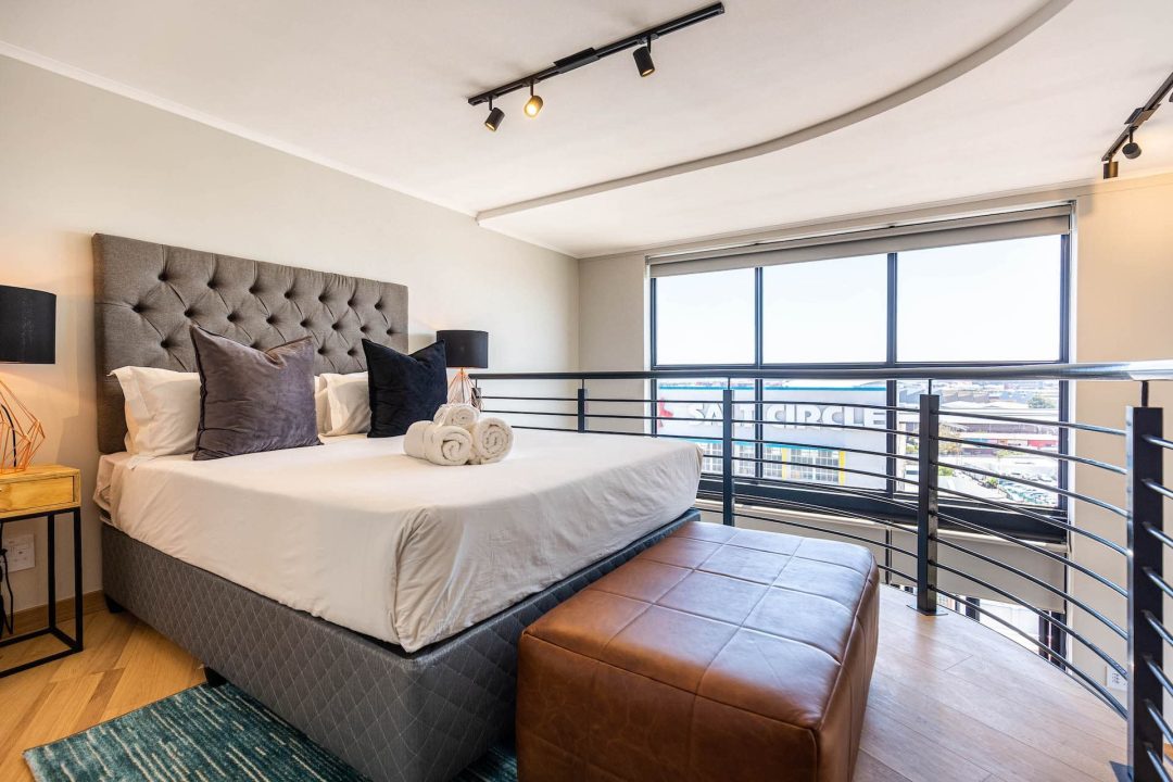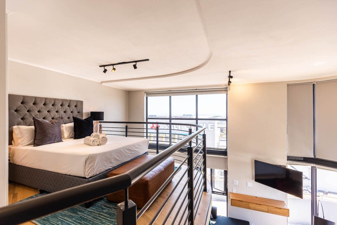 Tastefully furnished interiors boast a modern style with designer décor and furnishings, state-of-the-art appliances, and high-speed wireless Internet. Naturally lit open-plan living spaces boast large windows with beautiful views, engineered wooden oak floors, and modern kitchens with high-end appliances. Luxury penthouses have spacious double-volume living spaces with living areas on the lower level and bedrooms on a mezzanine level. Bedrooms have premium bedding, ample cupboard space, and en-suite bathrooms with glass-enclosed rain showers, daily housekeeping, CCTV security, and access control, and secure underground parking.