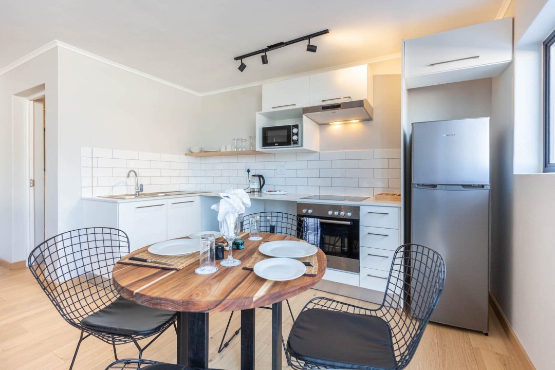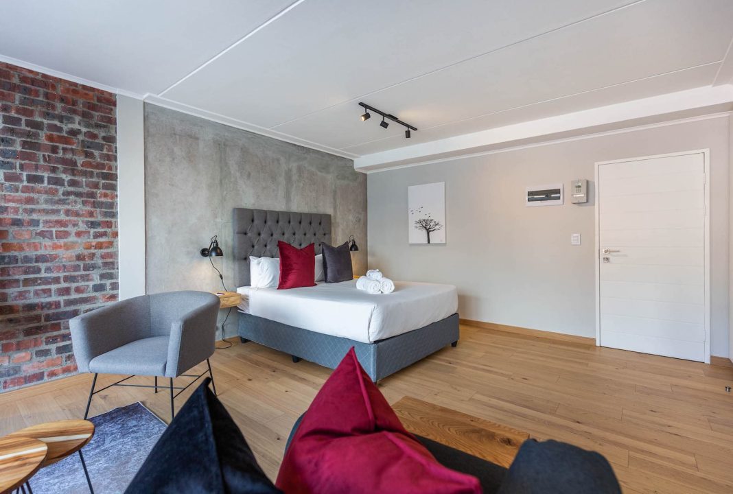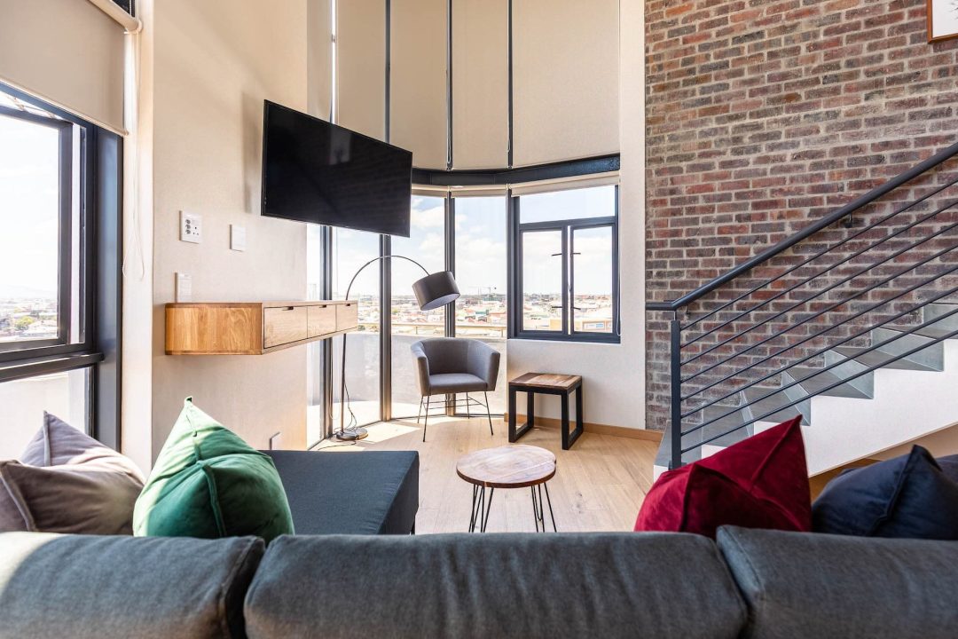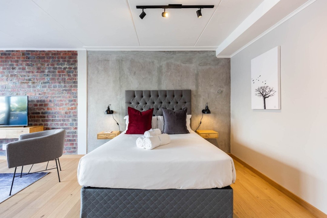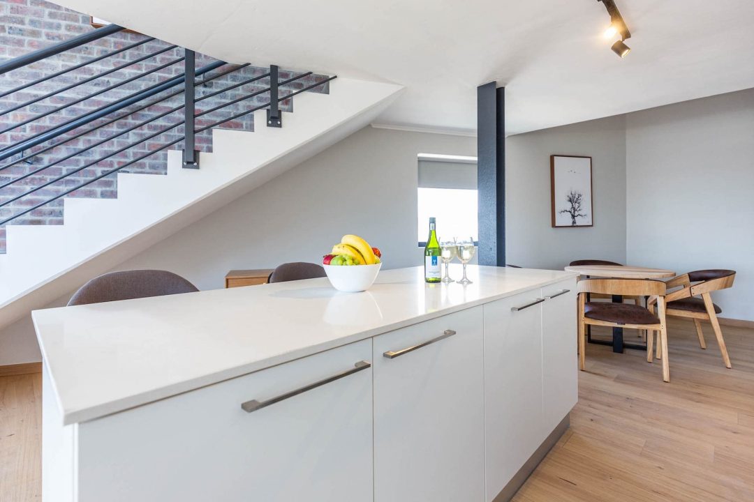 Tastefully furnished interiors boast a modern style with designer décor and furnishings, state-of-the-art appliances, and high-speed wireless Internet. Naturally lit open-plan living spaces boast large windows with beautiful views, engineered wooden oak floors, and modern kitchens with high-end appliances. Luxury penthouses have spacious double-volume living spaces with living areas on the lower level and bedrooms on a mezzanine level. Bedrooms have premium bedding, ample cupboard space, and en-suite bathrooms with glass-enclosed rain showers, daily housekeeping, CCTV security, and access control, and secure underground parking.