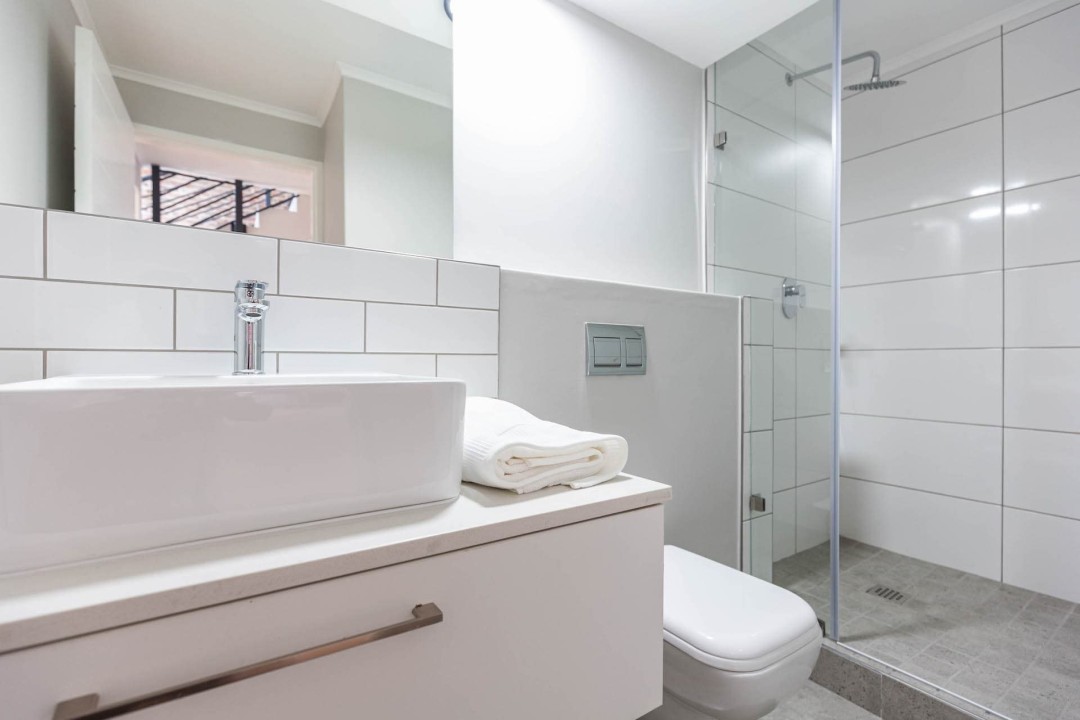 - En-suite or private bathrooms with glass-enclosed walk-in rain showers