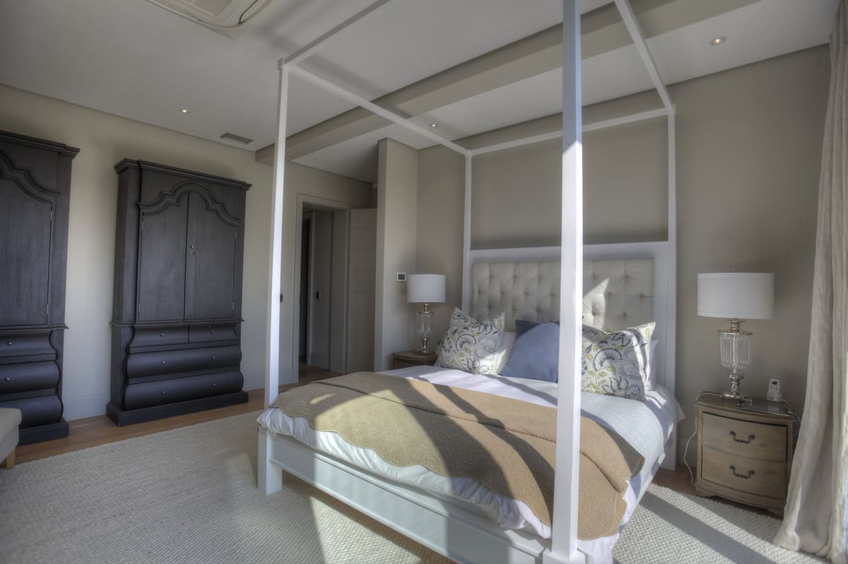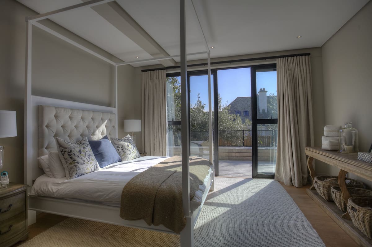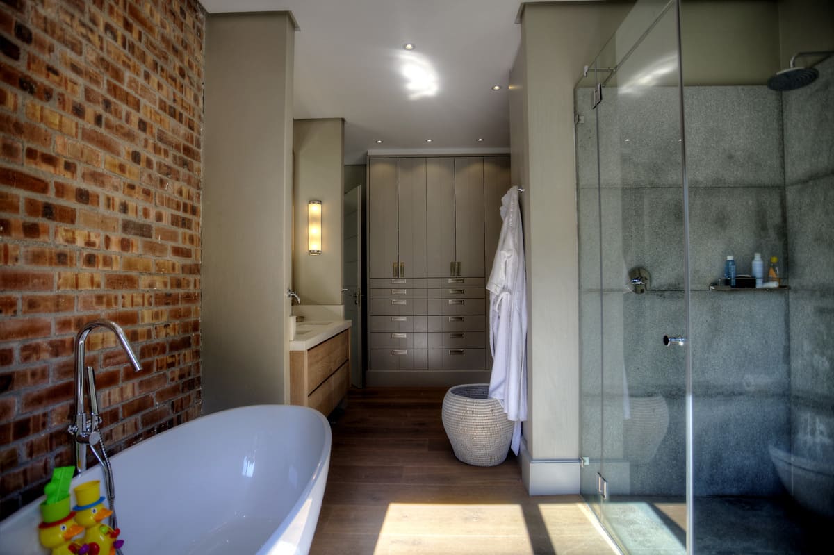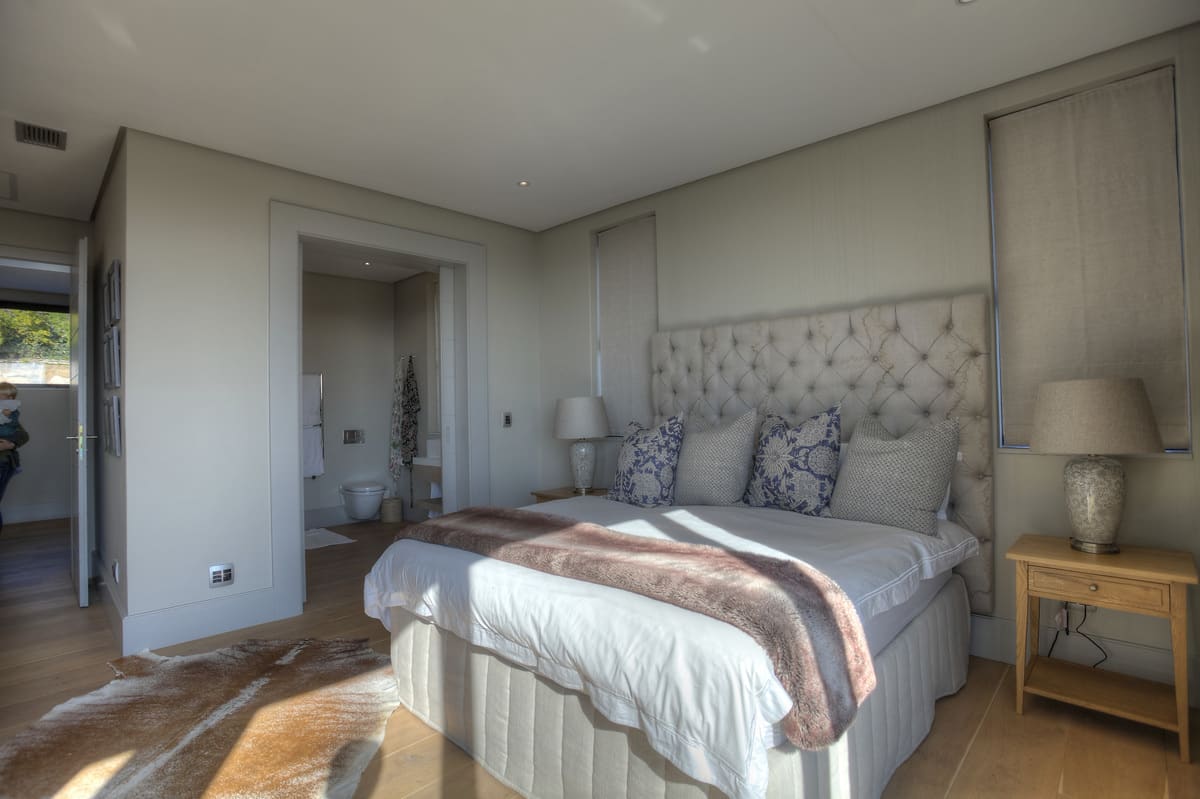 A third bedroom also has a en-suite bathroom. It has two single beds that can be converted into a king size bed if requested. This bedroom has French doors which lead out to a courtyard where you can enjoy the view of Table Mountain.
