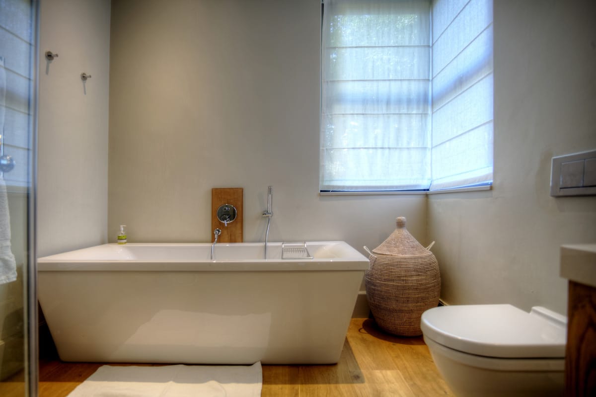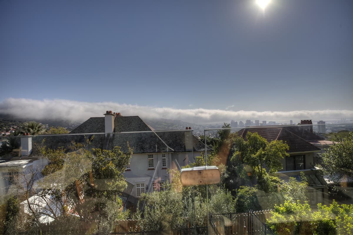 The top floor guest room, which leds off the living area, has the best views of the City and Ocean with a spacious en-suite bathroom (shower only). The main bedroom is en-suite and is beautifully and stylishly decorated. It has fantastic French doors that open from the full bathroom & bedroom onto the wooden deck.