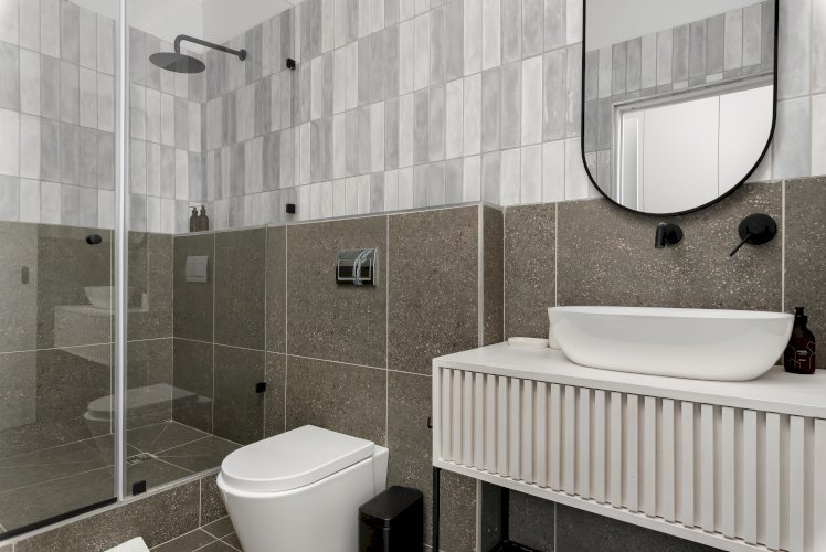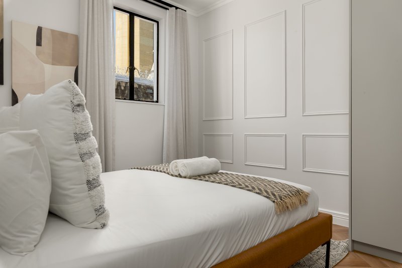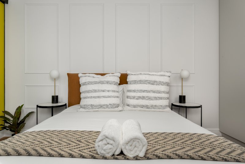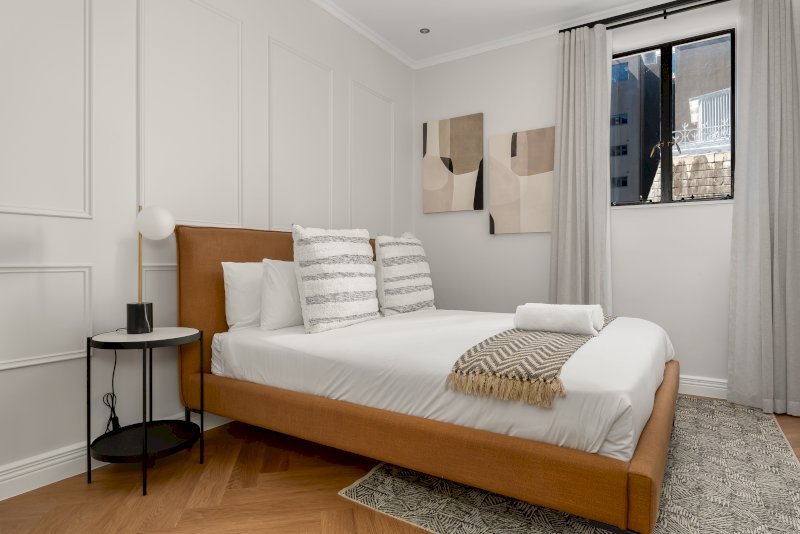The space offers two light and airy bedrooms, each featuring a cosy queen bed, ample cabinet space, and sleek ensuite bathrooms with a walk-in shower.