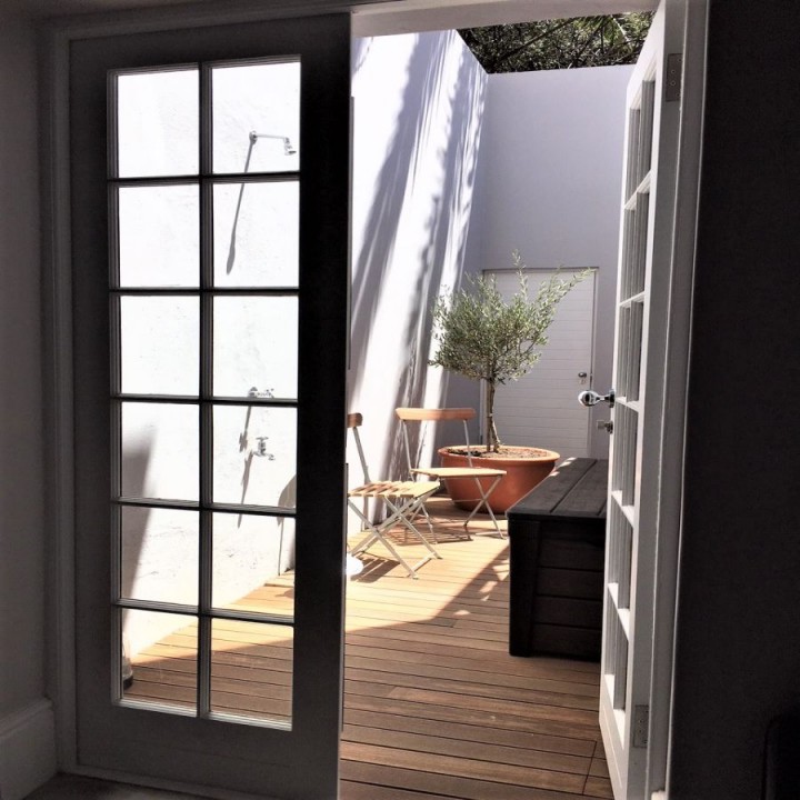 Guest access Access to all rooms: Downstairs: large living and dining room with kitchen galley, guest toilet, little study/reading room, little courtyard (wooden deck)