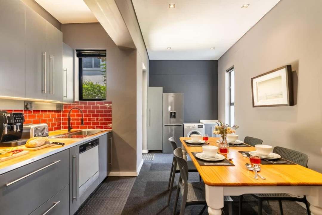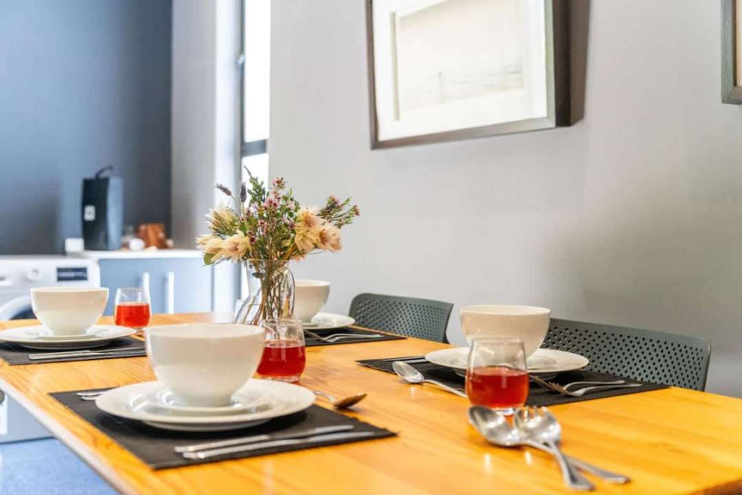 The apartment is easily reached via a flight of stairs to the top penthouse floor, access to the main property is through a private access controlled entrance from Strathmore Road. Upon entering, you’ll find yourself in the well-equipped kitchen with almost every kitchen tool you will ever need, designed to meet all your culinary needs. It features an induction hot plate, microwave, multi-pot cooker, air-fryer, nutri-blender, sandwich press, dishwasher etc, ensuring your stay is as comfortable as it is convenient. A four-seater dining table sits in the kitchen, making it an ideal space for intimate meals.